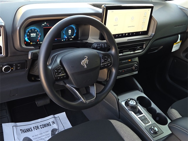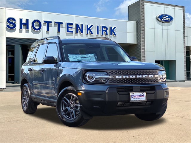 Azure / Gray 2025 Ford Bronco Sport Big Bend 4WD 8-Speed Automatic 1.5L EcoBoost 25/30 City/Highway MPG Air Conditioning, Auto High-beam Headlights, Automatic temperature control, Delay-off headlights, Panic alarm, Rear Parking Sensors, Rear window defroster, Security system, Speed control, Split folding rear seat.