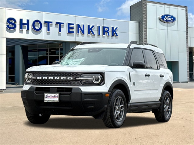 Oxford White 2025 Ford Bronco Sport Big Bend 4WD 8-Speed Automatic 1.5L EcoBoost 25/30 City/Highway MPG Heated door mirrors, Power steering, Power windows, Rear Parking Sensors, Rear window wiper, Speed-Sensitive Wipers, SYNC 4 w/Enhanced Voice Recognition, Variably intermittent wipers.