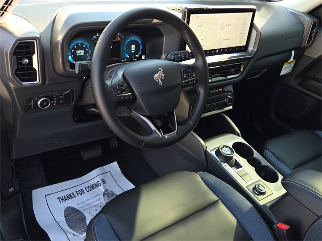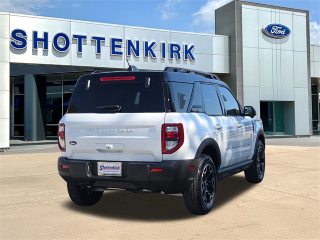 Oxford White 2025 Ford Bronco Sport Outer Banks 4WD 8-Speed Automatic 1.5L EcoBoost 25/30 City/Highway MPG Memory seat, Power driver seat, Power steering, Rain sensing wipers, Rear window wiper, Speed-Sensitive Wipers, Variably intermittent wipers.