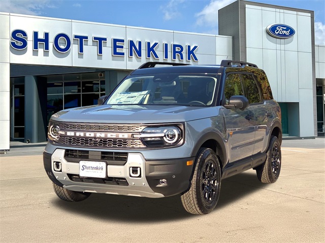 Azure Gray Metallic 2025 Ford Bronco Sport Badlands 4WD 8-Speed Automatic EcoBoost 2.0L I4 GTDi DOHC Turbocharged VCT 21/27 City/Highway MPG B&O Sound System by Bang & Olufsen, Badlands Tech Package, Connected Navigation, Equipment Group 400A, HD Radio, Power Moonroof, SYNC 4 w/Enhanced Voice Recognition.