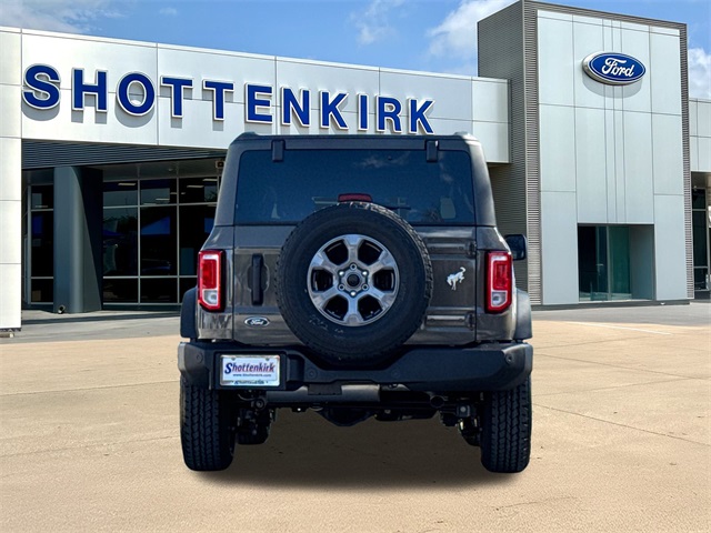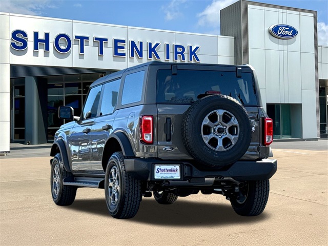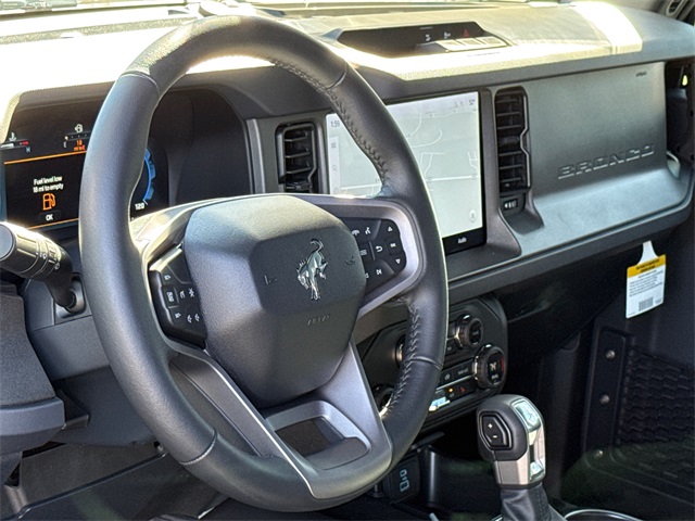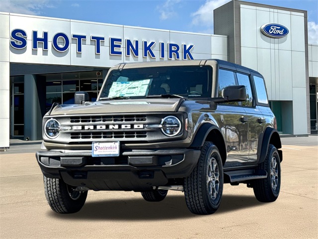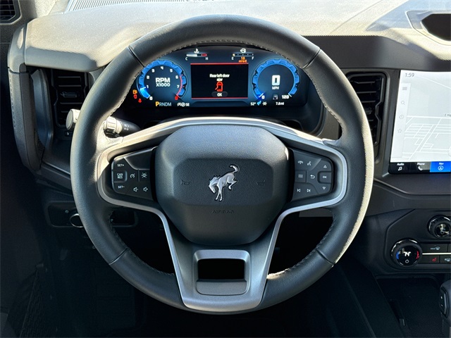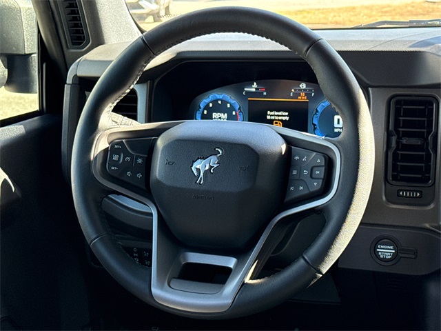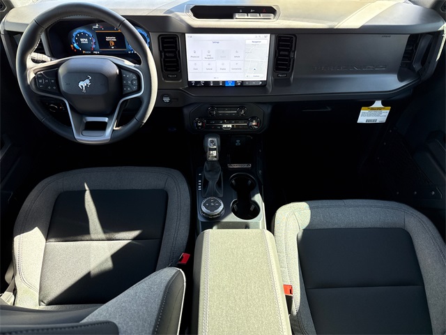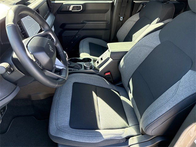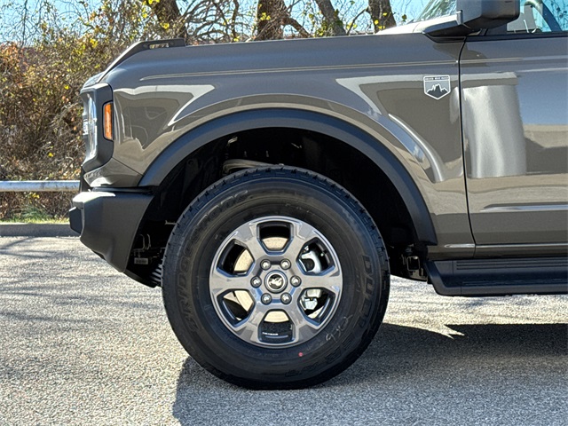 Gray 2025 Ford Bronco Big Bend 4WD 10-Speed Automatic 2.3L EcoBoost I-4 2-Door Intelligent Access w/Lock/Unlock, 4.46 Axle Ratio, Ambient Footwell Lighting, BLIS Blind Spot Information System, Connected Navigation, Dr & Pass Illuminated Sliding Visor Vanity Mirrors, Dual Smart Charging USB Ports, Dual-Zone Electronic Automatic Temperature Control, Equipment Group 222A Mid Package, Front Row Heated Seats, Panic alarm, Power Outlet - Back Side of Center Floor Console, Power steering, Power windows, Rear Parking Sensors, Security system, Speed control.