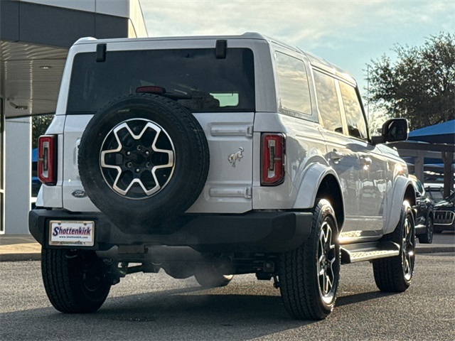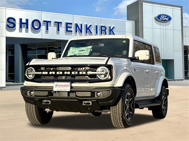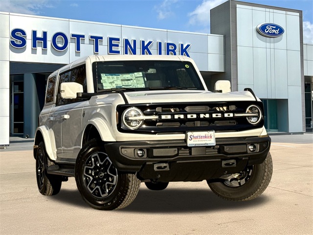 Oxford White 2025 Ford Bronco Outer Banks 4WD 10-Speed Automatic 2.7L EcoBoost V6 3.73 Axle Ratio, 360-Degree Camera, Adaptive Cruise Control, Equipment Group 314A Lux Package, Evasive Steering Assist, Front Parking Sensors, Information on Demand Panel, Navigation system: Connected Navigation, Radio: B&O Sound System by Bang & Olufsen, Sideview Mirrors, Universal Garage Door Opener.