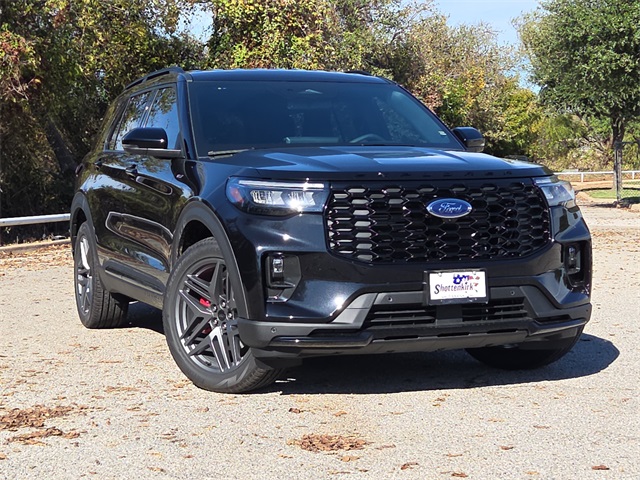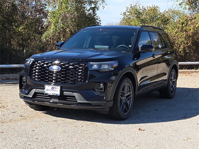 Black Metallic 2025 Ford Explorer ST-Line RWD 10-Speed Automatic 2.3L EcoBoost I-4 20/29 City/Highway MPG 3.58 Non-Limited Slip Rear Axle, Exterior Parking Camera Rear, Navigation System, Power driver seat, Power Liftgate, Power steering, Power windows, Remote keyless entry, Steering wheel mounted audio controls.