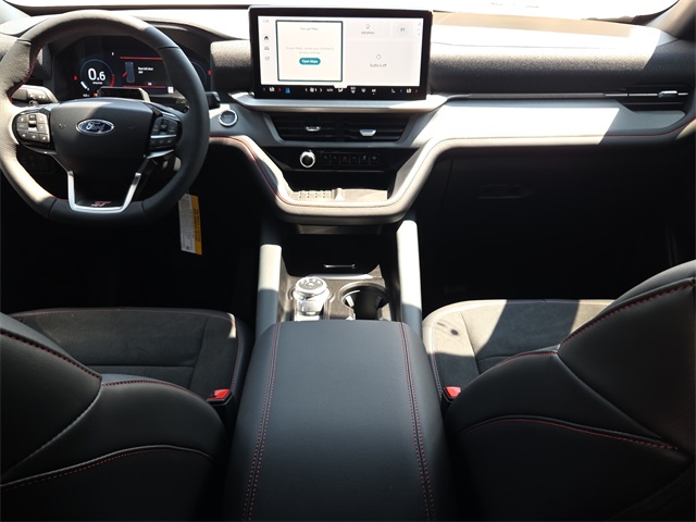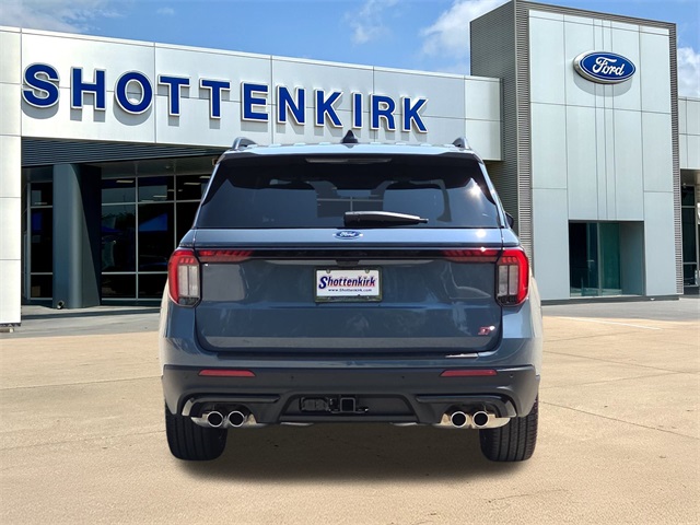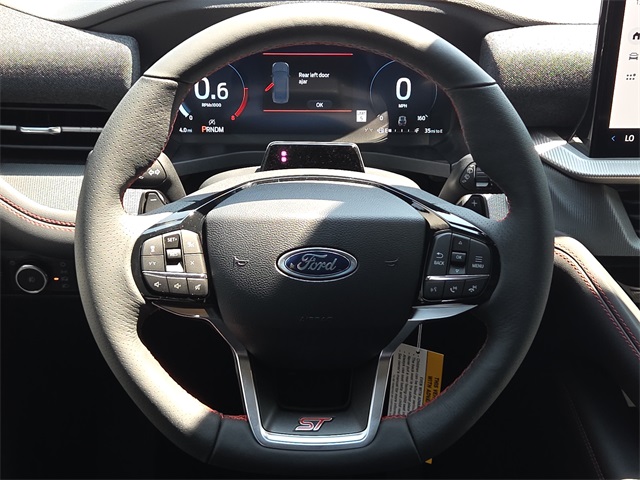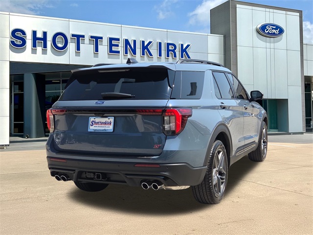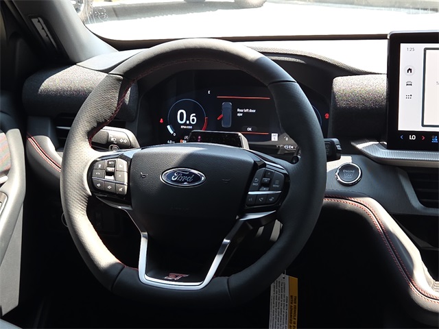 Vapor Blue 2025 Ford Explorer ST 4WD 10-Speed Automatic 3.0L EcoBoost V6 3.58 Non-Limited Slip Rear Axle, Equipment Group 400A Standard Package, Heated front seats, Heated rear seats, Panic alarm, Power Liftgate, Security system.