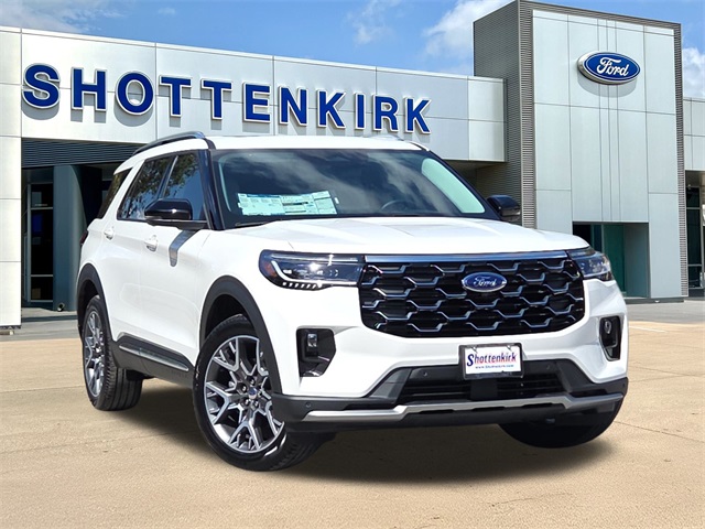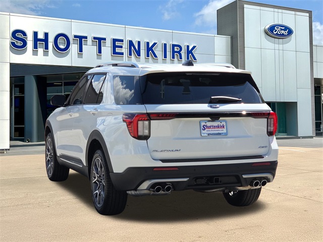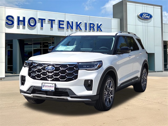 White 2025 Ford Explorer Platinum 4WD 10-Speed Automatic 3.0L EcoBoost V6 14 Speakers, 3.58 Non-Limited Slip Rear Axle, Power Liftgate, Power moonroof, Radio data system, Radio: B&O Sound System by Bang & Olufsen w/HD, Rain sensing wipers, Rear window wiper, Speed-Sensitive Wipers, Variably intermittent wipers.