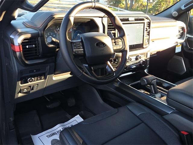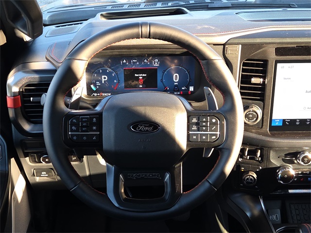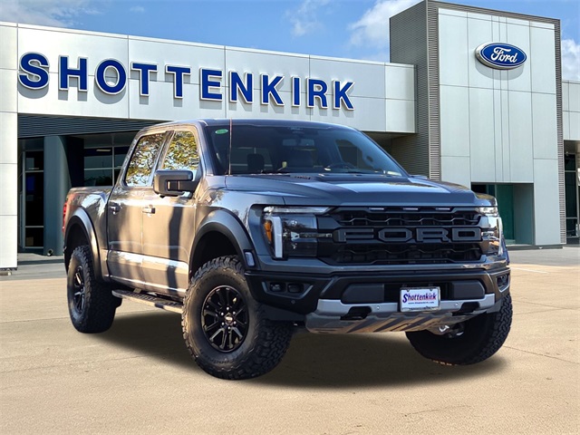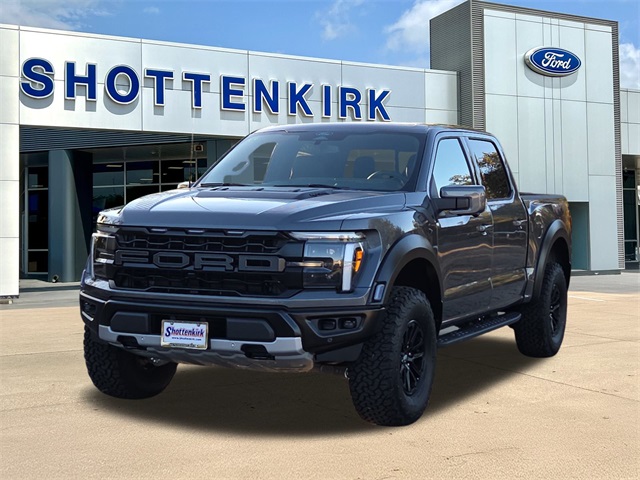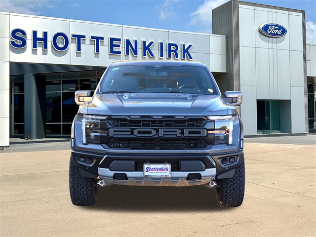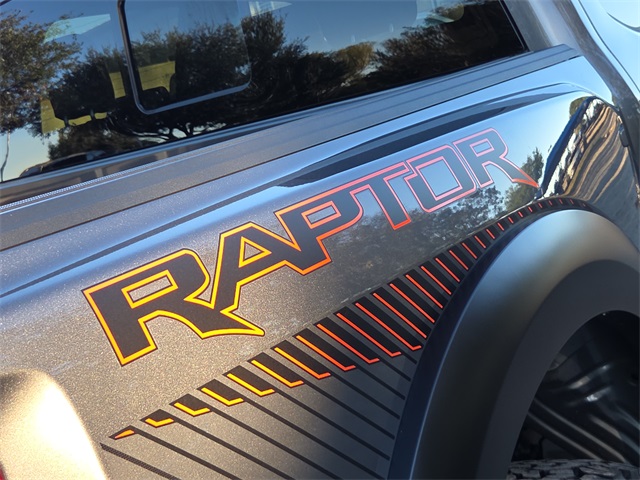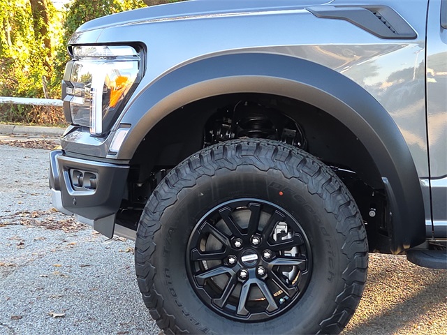 Gray 2025 Ford F-150 Raptor 4WD 10-Speed Automatic 3.5L V6 EcoBoost 14 Speakers, Electronic Locking w/4.10 Axle Ratio, Navigation system: Connected Navigation, Panic alarm, Radio: B&O Unleashed Sound System by Bang & Olufsen, Security system, Speed control, SYNC 4 w/Enhanced Voice Recognition.