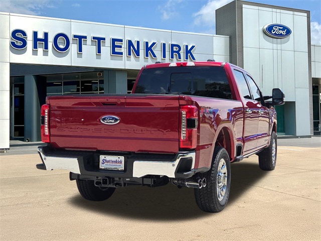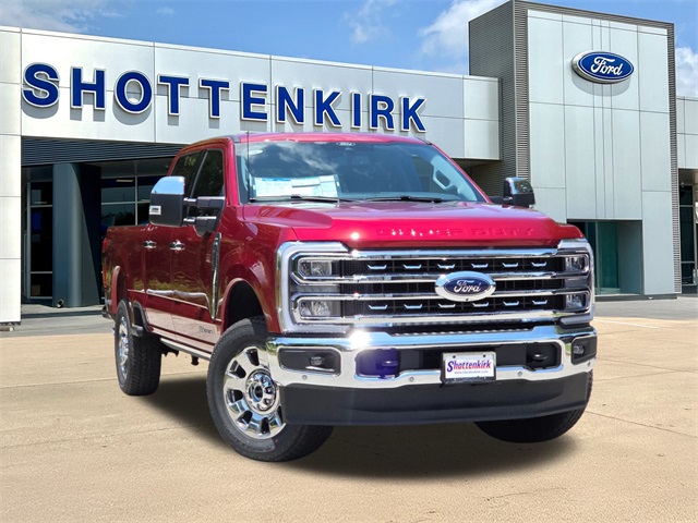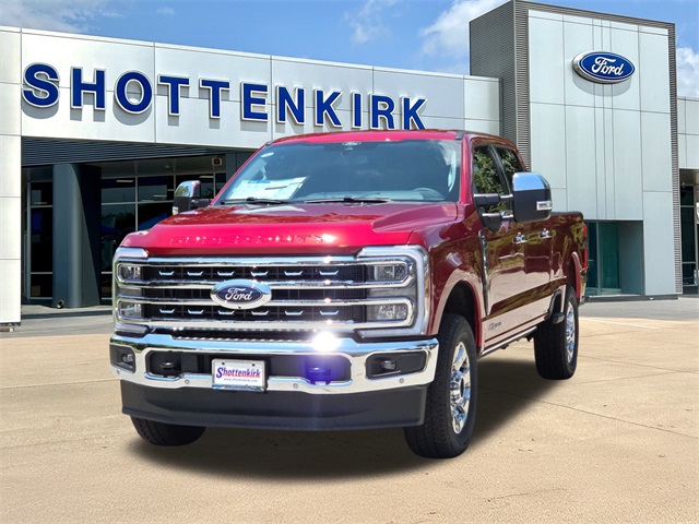Ruby Red Metallic 2025 Ford F-250SD Lariat 4WD 10-Speed Automatic Power Stroke 6.7L V8 DI 32V OHV Turbodiesel 3.73 Axle Ratio, Bumpers: chrome, Delay-off headlights, F-250 >10K GVWR Package, Steering wheel mounted audio controls, SYNC 4 w/Enhanced Voice Recognition, Wheels: 18" Bright Machined & Carbonized Gray Alum.