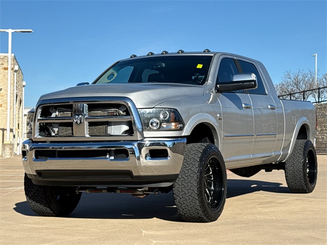 2012 Ram 2500 Laramie Longhorn 4D Mega Cab Laramie Longhorn Bright Silver Metallic Clearcoat Cummins 6.7L I6 Turbodiesel 6-Speed Automatic 4WD This vehicle comes well equipped with 2500 Laramie Longhorn, 4D Mega Cab, Cummins 6.7L I6 Turbodiesel, 6-Speed Automatic, 4WD, Bright Silver Metallic Clearcoat, Dark Slate Leather, Auto-dimming door mirrors, Chrome Bodyside Molding, Chrome Exterior Mirrors, Clearance Lamps, Cummins Turbo Diesel Badge, Delay-off headlights, Exterior Mirrors Courtesy Lamps, Exterior Mirrors w/Heating Element, Exterior Mirrors w/Supplemental Signals, Front fog lights, Fully automatic headlights, Heated door mirrors, Limited Badge, Limited Decor Group, Navigation System, Panic alarm, Security system, and Speed control.
