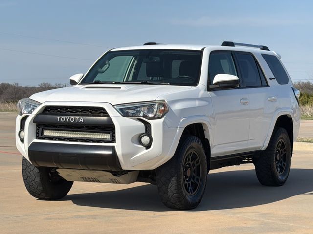 Recent Arrival! CARFAX One-Owner. 2015 Toyota 4Runner TRD Pro 4D Sport Utility TRD Pro Super White 4.0L V6 SMPI DOHC 5-Speed Automatic with Overdrive 4WD This vehicle comes well equipped with TRD Pro Package (Auto-Dimming Rear-View Mirror, Black Roof Rails, Garage Door Opener, TRD Badging, TRD Pro Floor Mats, TRD Shift Knob, and TRD Suspension Kit), 4D Sport Utility, 4.0L V6 SMPI DOHC, 5-Speed Automatic with Overdrive, 4WD, Super White, Black w/Leather Seat Trim, 8 Speakers, ABS brakes, Alloy wheels, AM/FM radio: SiriusXM, Auto-dimming Rear-View mirror, Brake assist, Bumpers: body-color, Compass, Driver door bin, Driver vanity mirror, Electronic Stability Control, Exterior Parking Camera Rear, Front fog lights, Front reading lights, Garage door transmitter: HomeLink, Heated door mirrors, Heated Front Bucket Seats, Heated front seats, Illuminated entry, Leather Shift Knob, Low tire pressure warning, Outside temperature display, Overhead console, Panic alarm, Passenger vanity mirror, Power door mirrors, Power driver seat, Power steering, Power windows, Remote keyless entry, Roof rack, Security system, Speed control, Spoiler, Traction control, and Turn signal indicator mirrors.