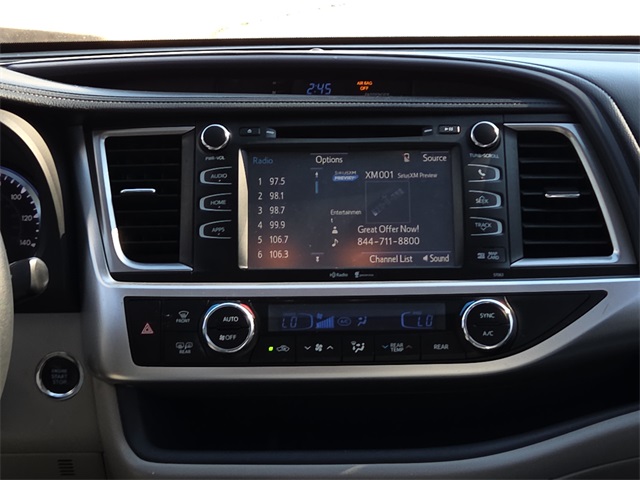 Clean CARFAX. 2015 Toyota Highlander Silver 4D Sport Utility FWD XLE V6 6-Speed Automatic Electronic with Overdrive Local Trade In, Highlander XLE V6, 3.5L V6 DOHC Dual VVT-i 24V, FWD, Silver, Ash Leather, 3rd row seats: split-bench, 4.154 Axle Ratio, Auto-dimming Rear-View mirror, Automatic temperature control, Exterior Parking Camera Rear, Front Bucket Seats, Fully automatic headlights, Navigation System, Power driver seat, Power Liftgate, Power moonroof, Power steering, Power windows, Radio: Entune Premium Audio w/Nav & App Suite, Wheels: 18" Split 5-Spoke Machined-Face Alloy. 3.5L V6 DOHC Dual VVT-i 24V