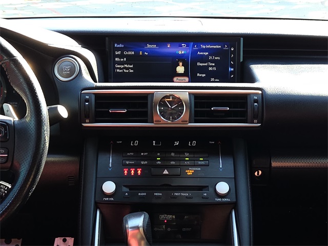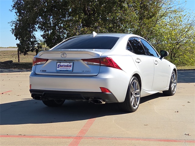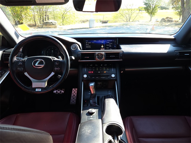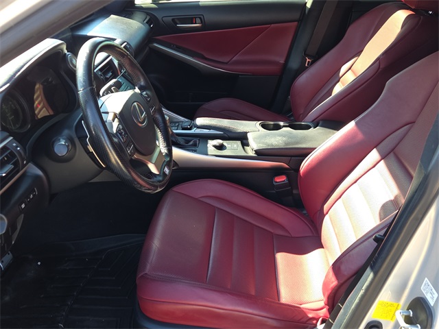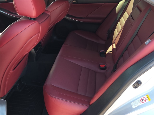 2017 Lexus IS 350 4D Sedan 350 Silver Lining Metallic 3.5L V6 DOHC Dual VVT-i 24V 8-Speed Automatic RWD This vehicle comes well equipped with IS 350, 4D Sedan, 3.5L V6 DOHC Dual VVT-i 24V, 8-Speed Automatic, RWD, Rioja Red w/F Sport Nuluxe Seat Trim, Auto High-beam Headlights, Auto-dimming Rear-View mirror, Bumpers: body-color, Delay-off headlights, Front fog lights, Fully automatic headlights, Heated door mirrors, Panic alarm, Power door mirrors, Security system, Speed control, and Turn signal indicator mirrors.