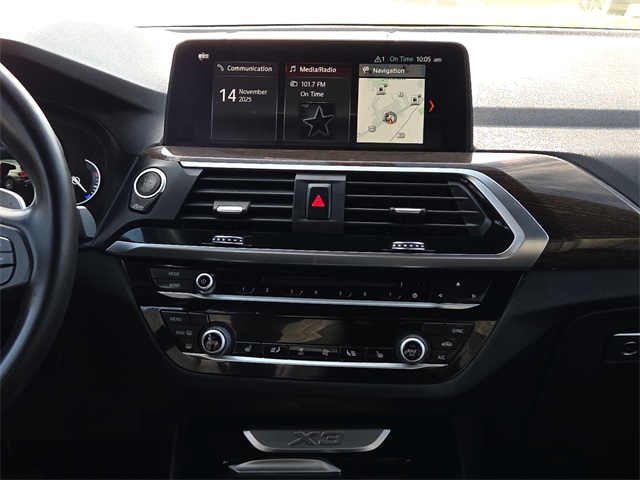22/29 City/Highway MPG X3 xDrive30i, 2.0L I4 TwinPower Turbo, Alpine White, Advanced Real-Time Traffic Information, Apple CarPlay Compatibility, Delay-off headlights, Exterior Parking Camera Rear, Garage door transmitter, Hands-Free Bluetooth & USB Audio Connection, Hi-Fi Sound System, Knee airbag, Memory seat, Navigation System, Panoramic Moonroof, Power driver seat, Power Liftgate, Remote Services. This vehicle comes well equipped with X3 xDrive30i, 2.0L I4 TwinPower Turbo, Alpine White, Advanced Real-Time Traffic Information, Apple CarPlay Compatibility, Delay-off headlights, Exterior Parking Camera Rear, Garage door transmitter, Hands-Free Bluetooth & USB Audio Connection, Hi-Fi Sound System, Knee airbag, Memory seat, Navigation System, Panoramic Moonroof, Power driver seat, Power Liftgate, and Remote Services X3 xDrive30i, 2.0L I4 TwinPower Turbo, Alpine White, Advanced Real-Time Traffic Information, Apple CarPlay Compatibility, Delay-off headlights, Exterior Parking Camera Rear, Garage door transmitter, Hands-Free Bluetooth & USB Audio Connection, Hi-Fi Sound System, Knee airbag, Memory seat, Navigation System, Panoramic Moonroof, Power driver seat, Power Liftgate, Remote Services, 12 Speakers, 3.385 Axle Ratio, 4-Wheel Disc Brakes, ABS brakes, Air Conditioning, Alloy wheels, AM/FM radio, Anti-Theft AM/FM Stereo CD/MP3 Player, Auto-dimming door mirrors, Auto-dimming Rear-View mirror, Automatic temperature control, Brake assist, Bumpers: body-color, CD player, Driver door bin, Driver vanity mirror, Dual front impact airbags, Dual front side impact airbags, DVD Area Coding (North America), Electronic Stability Control, Emergency communication system: BMW Assist eCall, Four wheel independent suspension, Front anti-roll bar, Front Bucket Seats, Front Center Armrest, Front dual zone A/C, Front fog lights, Front reading lights, Fully automatic headlights, Genuine wood dashboard insert, Genuine wood door panel insert, Heated door mirrors, Heated Front Seats, Illuminated entry, In-Dash CD Player, Low tire pressure warning, Occupant sensing airbag, Outside temperature display, Overhead airbag, Panic alarm, Park Distance Control, Passenger door bin, Passenger vanity mirror, Power door mirrors, Power Front Seats, Power passenger seat, Power steering, Power windows, Radio Control US, Radio data system, Rain sensing wipers, Rear air conditioning, Rear anti-roll bar, Rear reading lights, Rear seat center armrest, Rear window defroster, Rear window wiper, Remote keyless entry, Roof rack: rails only, Security system, SensaTec Upholstery, Speed control, Speed-sensing steering, Speed-Sensitive Wipers, Split folding rear seat, Spoiler, Sport Seats, Sport steering wheel, Steering wheel mounted audio controls, Tachometer, Telescoping steering wheel, Tilt steering wheel, Traction control, Trip computer, Turn signal indicator mirrors, Variably intermittent wipers, Wheels: 18" x 7.0" Y-Spoke (Style 688), and Wheels: 19" x 7.5" (Style 692)