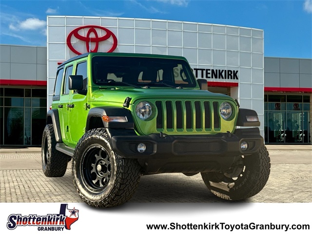 CARFAX One-Owner. 2018 Jeep Wrangler Unlimited Sport S 4D Sport Utility Unlimited Sport S Mojito! Clearcoat 3.6L V6 24V VVT 8-Speed Automatic 4WD This vehicle comes well equipped with Convenience Group (Universal Garage Door Opener), Quick Order Package 24S Sport S (Automatic Headlamps, Deep Tint Sunscreen Windows, Front 1-Touch Down Power Windows, Leather Wrapped Steering Wheel, Power Heated Mirrors, Remote Keyless Entry, Security Alarm, Speed Sensitive Power Locks, Sun Visors w/Illuminated Vanity Mirrors, and Wheels: 17" x 7.5" Tech Silver Aluminum), Technology Group (1-Yr SiriusXM Radio Service, 7.0" Touchscreen Display, Air Conditioning w/Auto Temperature Control, Air Filtering, Apple CarPlay, Cluster 7.0" TFT Color Display, For More Info, Call 800-643-2112, Google Android Auto, GPS Antenna Input, Integrated Center Stack Radio, Radio: Uconnect 4 w/7" Display, SiriusXM Satellite Radio, and USB Host Flip), Wrangler Unlimited Sport S, 4D Sport Utility, 3.6L V6 24V VVT, 8-Speed Automatic, 4WD, Mojito! Clearcoat, Black Cloth, Air Conditioning, Anti-Spin Differential Rear Axle, Black 3-Piece Hard Top, Brake assist, Bridgestone Brand Tires, Delay-off headlights, Electronic Stability Control, Freedom Panel Storage Bag, Front fog lights, ParkView Rear Back-Up Camera, Power steering, Rear Window Defroster, Rear Window Wiper/Washer, Speed control, and Steering wheel mounted audio controls.