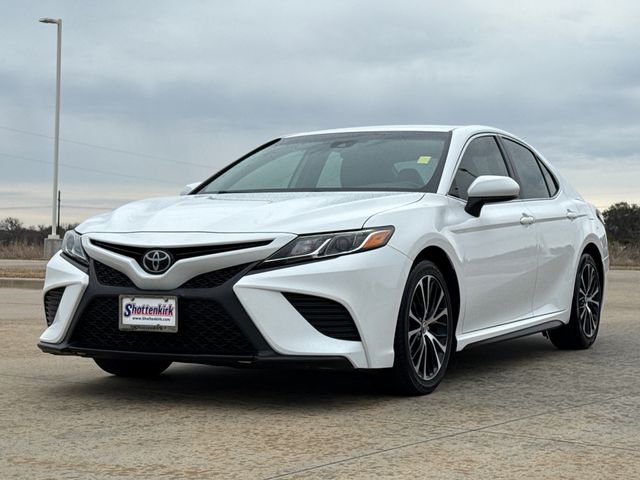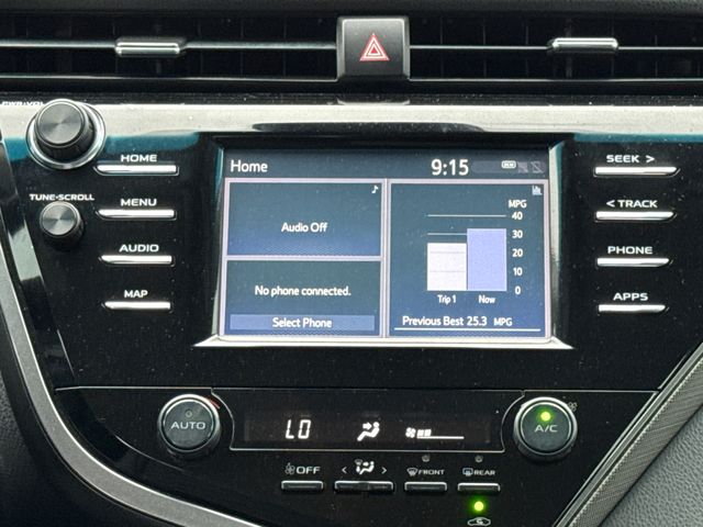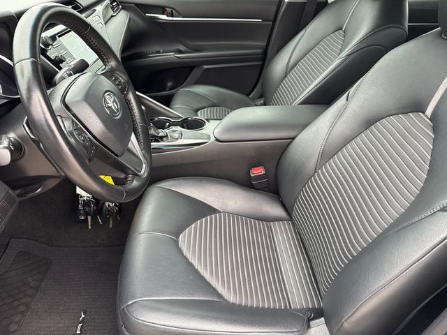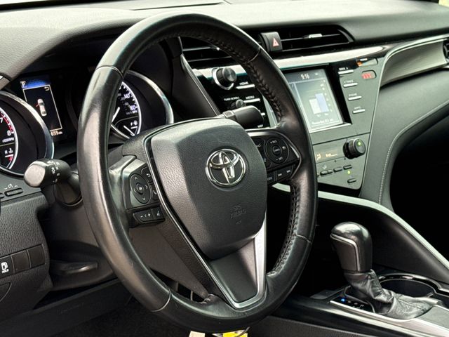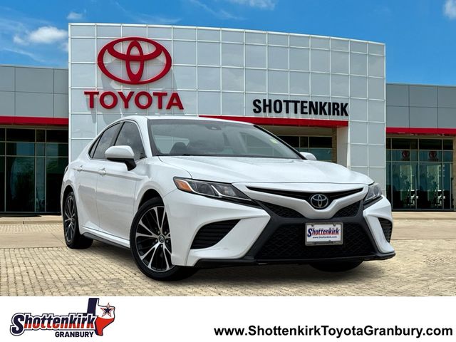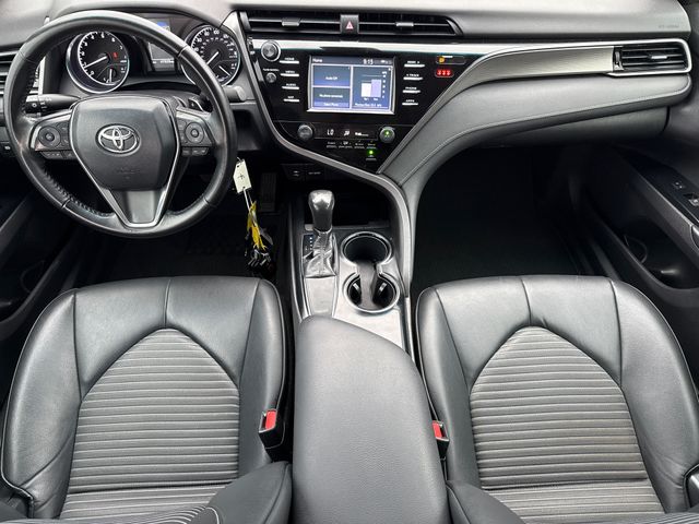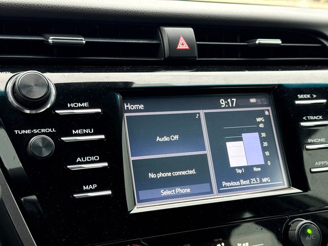 2019 Toyota Camry SE 4D Sedan SE Super White 2.5L I4 DOHC 16V 8-Speed Automatic FWD This vehicle comes well equipped with 4D Sedan, 2.5L I4 DOHC 16V, 8-Speed Automatic, FWD, Super White, Black w/Fabric Seat Trim w/SofTex, 4-Wheel Disc Brakes, 6 Speakers, ABS brakes, Active Cruise Control, Air Conditioning, Alloy wheels, AM/FM radio, Auto High-beam Headlights, Automatic temperature control, Brake assist, Delay-off headlights, Dual front impact airbags, Dual front side impact airbags, Electronic Stability Control, Emergency communication system: Safety Connect, Exterior Parking Camera Rear, Front anti-roll bar, Fully automatic headlights, Illuminated entry, Knee airbag, Low tire pressure warning, Navigation System, Occupant sensing airbag, Overhead airbag, Panic alarm, Power driver seat, Power steering, Power windows, Radio data system, Radio: Entune 3.0 Audio w/App Suite, Rear anti-roll bar, Rear side impact airbag, Rear window defroster, Remote keyless entry, Security system, Speed control, Steering wheel mounted audio controls, and Traction control.