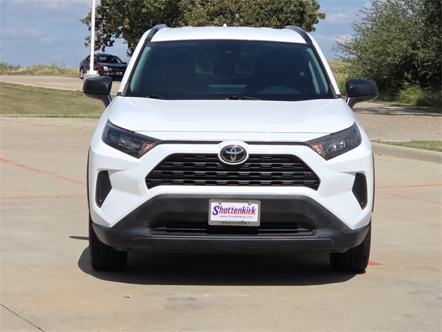 Recent Arrival! 2019 Toyota RAV4 LE 4D Sport Utility LE Super White 2.5L 4-Cylinder DOHC Dual VVT-i 8-Speed Automatic FWD This vehicle comes well equipped with RAV4 LE, 4D Sport Utility, 2.5L 4-Cylinder DOHC Dual VVT-i, 8-Speed Automatic, FWD, Super White, Black w/Fabric Seat Trim, 4-Wheel Disc Brakes, ABS brakes, Auto High-beam Headlights, Brake assist, Bumpers: body-color, Dual front impact airbags, Dual front side impact airbags, Electronic Stability Control, Emergency communication system: Entune Safety Connect, Exterior Parking Camera Rear, Front anti-roll bar, Knee airbag, Low tire pressure warning, Occupant sensing airbag, Overhead airbag, Panic alarm, Power door mirrors, Rear anti-roll bar, Roof rack: rails only, Speed control, and Spoiler.26/35 City/Highway MPGAt SHOTTENKIRK Toyota located in Granbury, TX all of our Pre-Owned vehicles go through a 100 point plus inspection. The oil and filter are changed, complete brake inspection, tire rotation, safety inspection and all fluid levels are topped off. If we find anything that needs attention we address the issue and fix it. So buy with confidence that you are getting a quality vehicle. We can do a complete walk around for you over the phone. Trade ins are always welcomed. We offer financing from over 25 finance and credit unions locally and nationally. We serve all of Granbury as well as the surrounding cities of Aledo, Fort Worth, Arlington, and Burleson. Payment does not include state required tax, title, license and registration fees. Not all buyers will qualify.Awards: * 2019 KBB.com 10 Favorite New-for-2019 Cars * 2019 KBB.com 10 Best SUVs Under $30,000 * 2019 KBB.com Brand Image Awards * 2019 KBB.com Best Resale Value Awards
