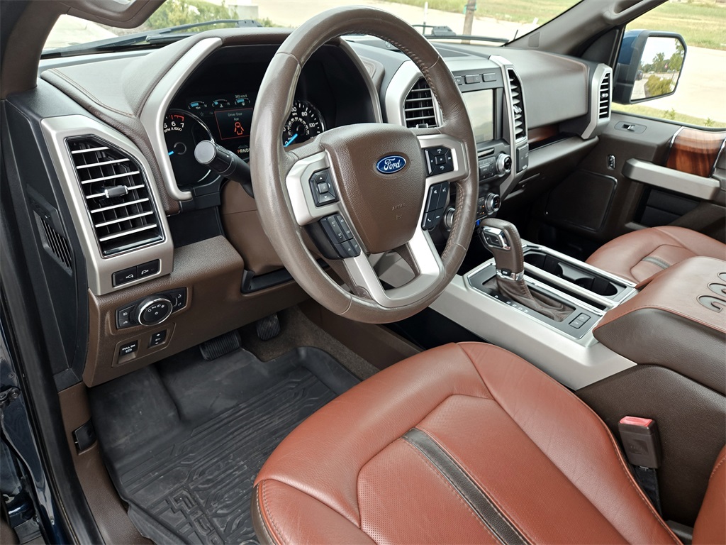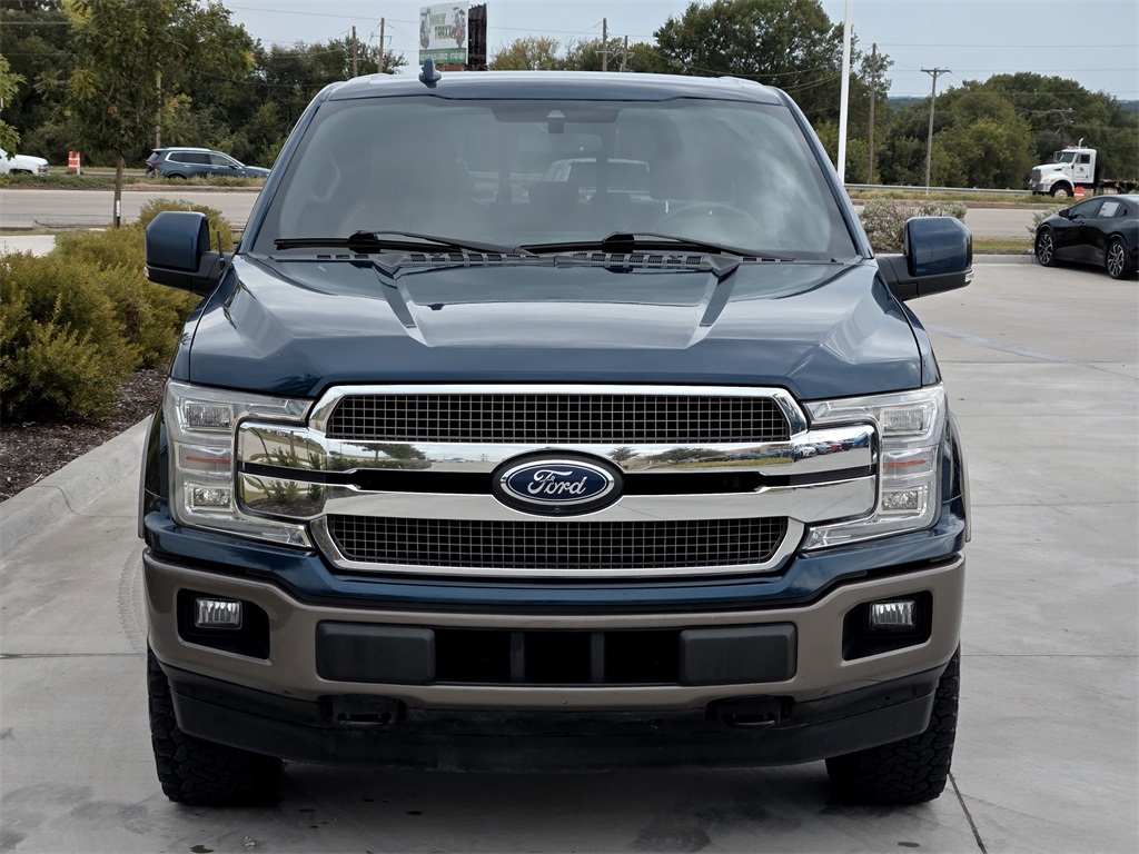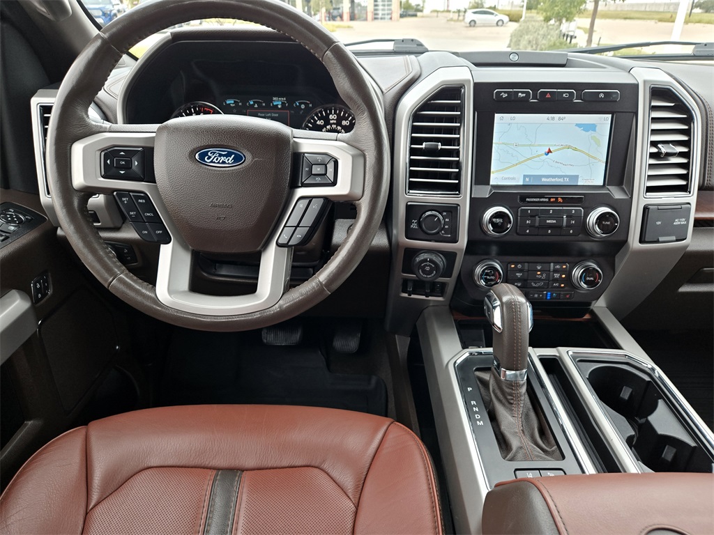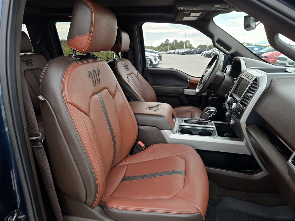CARFAX One-Owner. 4WD, Bluetooth, Hands-Free Connections, Navigation / GPS / Telematics, Portable Audio Connections, Premium Audio, Backup Camera, Heated and Cooled Seats, Leather Seats, Premium Wheels, High Performance Tires, Sunroof / Moonroof, Towing Package, F-150 King Ranch, 4D SuperCrew, 3.5L V6 EcoBoost, 10-Speed Automatic, 4WD, Blue Jeans Metallic, Java w/King Ranch Leather Bucket Seats, 20" Machined-Aluminum Wheels, 360 Camera w/Split-View Display, 4x4 FX4 Off-Road Bodyside Decal, Active Park Assist, Class IV Trailer Hitch Receiver, Electronic Locking w/3.55 Axle Ratio, Engine Oil Cooler, Equipment Group 601A Luxury, Extended Range 36 Gallon Fuel Tank, FX4 Off-Road Package, GVWR: 7,050 lbs Payload Package, Hill Descent Control, Inflatable Rear Safety Belts, Integrated Trailer Brake Controller, Max Trailer Tow Package, Multi-Contour Driver & Passenger Seats, Navigation System, Off-Road Tuned Front Shock Absorbers, Power-Deployable Running Boards, Pro Trailer Backup Assist, Tailgate Step w/Tailgate Lift Assist, Technology Package, Tray Style Floor Liner, Upgraded Front Stabilizer Bar.