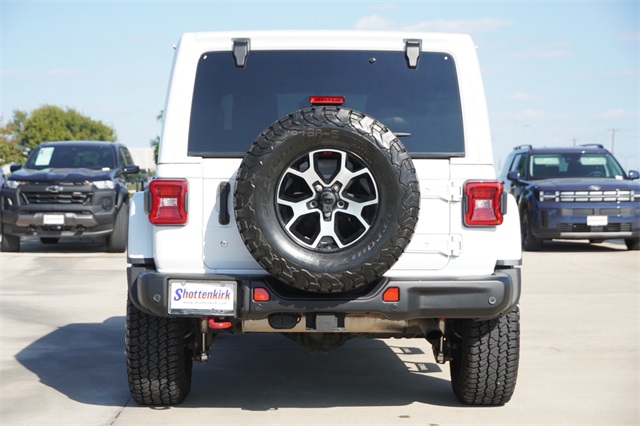 APPLE CAR PLAY, ANDROID AUTO, BLUETOOTH, LEATHER INTERIOR, ALLOY WHEELS, GREAT VALUE, LOW MILES, Wrangler Unlimited Rubicon, 4D Sport Utility, 2.0L I4 DOHC, 8-Speed Automatic, 4WD, Bright White Clearcoat, Black Leather, 1-Year SiriusXM Guardian Trial, 240 Amp Alternator, 4G LTE Wi-Fi Hot Spot, 5-Year SiriusXM Traffic Service, 5-Year SiriusXM Travel Link Service, 7 & 4 Pin Wiring Harness, 700 Amp Maintenance Free Battery, 8.4" Radio & Premium Audio Group, 8.4" Touchscreen Display, Alpine Premium Audio System, Auto-Dimming Rear-View Mirror, Auxiliary Switches, Blind Spot & Cross Path Detection, Class II Receiver Hitch, Cold Weather Group, Daytime Running Lamps LED Accents, Delay-off headlights, Emergency/Assistance Call, For Details, Visit DriveUconnect.com, Front fog lights, Front LED Fog Lamps, Fully automatic headlights, GPS Navigation, HD Radio, Heated Front Seats, Heated Steering Wheel, LED Lighting Group, LED Reflector Headlamps, LED Taillamps, ParkSense Rear Park Assist System, Quick Order Package 22R, Radio: Uconnect 4C Nav w/8.4" Display, Safety Group, SiriusXM Traffic Plus, SiriusXM Travel Link, Steel Bumper Group, Steel Front Bumper, Steel Rear Bumper, Trailer Tow & HD Electrical Group.