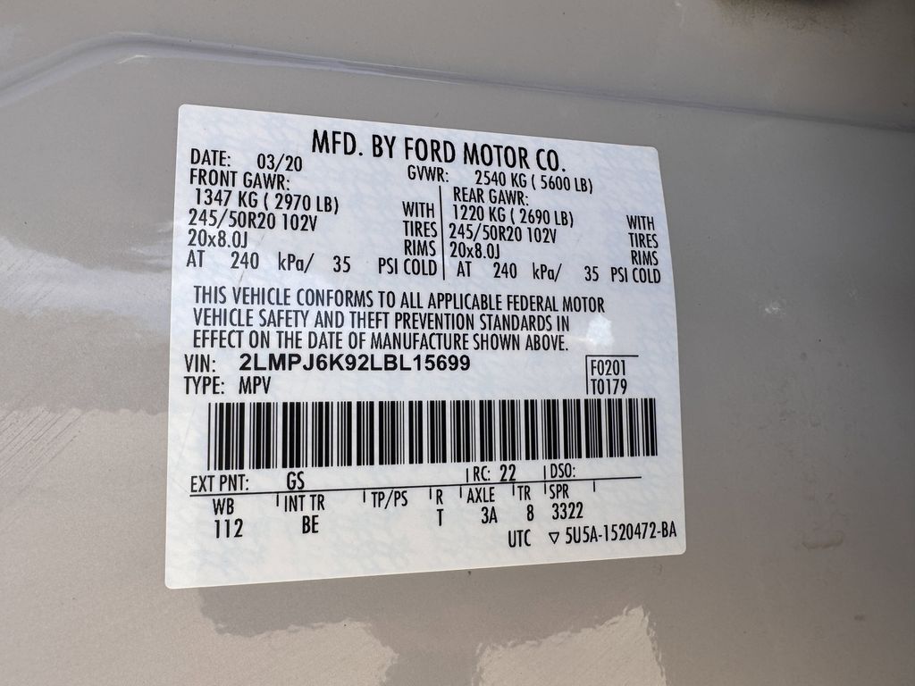 2020 Ceramic Pearl Lincoln Nautilus 2.0L Turbocharged FWD Reserve