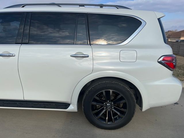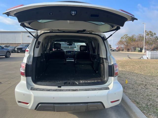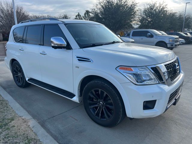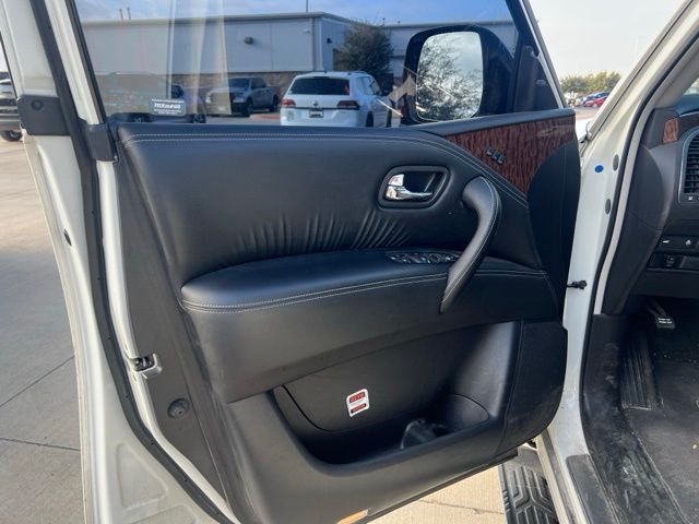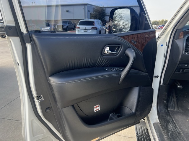 Clean CARFAX. 2020 Nissan Armada Platinum 4D Sport Utility Pearl White Tricoat 5.6L V8 7-Speed Automatic RWD This vehicle comes well equipped with Captain's Chairs Package (2nd Row Captain's Chairs and 2nd Row Center Console w/Padded Armrest), Cargo Package, Armada Platinum, 4D Sport Utility, 5.6L V8, RWD, Pearl White Tricoat, and Black Leather Captain's Chairs Package (2nd Row Captain's Chairs and 2nd Row Center Console w/Padded Armrest), Cargo Package, Armada Platinum, 4D Sport Utility, 5.6L V8, RWD, Pearl White Tricoat, Black Leather, 13 Speakers, 3rd Row Carpeted Floor Mats - Captain Seat, 3rd row seats: split-bench, 4-Wheel Disc Brakes, A/V remote, ABS brakes, Air Conditioning, Alloy wheels, AM/FM radio: SiriusXM, Anti-whiplash front head restraints, Auto tilt-away steering wheel, Auto-dimming door mirrors, Auto-dimming Rear-View mirror, Auto-leveling suspension, Automatic temperature control, Axle Ratio: 2.94, Brake assist, Bumpers: body-color, CD player, Cross Bars, Delay-off headlights, Driver door bin, Driver vanity mirror, Dual front impact airbags, Dual front side impact airbags, DVD-Audio, Electronic Stability Control, Emergency communication system: NissanConnect Services, Exterior Parking Camera Rear, Four wheel independent suspension, Front anti-roll bar, Front Bucket Seats, Front Center Armrest, Front dual zone A/C, Front fog lights, Front reading lights, Fully automatic headlights, Garage door transmitter: HomeLink, Headphones, Heated & Cooled Front Bucket Seats, Heated door mirrors, Heated front seats, Heated rear seats, Heated steering wheel, Illuminated entry, Illuminated Kick Plates, Leather Shift Knob, Leather-Appointed Seat Trim, Low tire pressure warning, Memory seat, Navigation System, Occupant sensing airbag, Outside temperature display, Overhead airbag, Overhead console, Panic alarm, Passenger door bin, Passenger vanity mirror, Power door mirrors, Power driver seat, Power Liftgate, Power moonroof, Power passenger seat, Power steering, Power windows, Radio data system, Radio: AM/FM/SXM/CD/MP3/HD, Rain sensing wipers, Rear air conditioning, Rear anti-roll bar, Rear reading lights, Rear seat center armrest, Rear window defroster, Rear window wiper, Reclining 3rd row seat, Remote keyless entry, Security system, Special Paint - Pearl White, Speed control, Speed-sensing steering, Speed-Sensitive Wipers, Split folding rear seat, Spoiler, Steering wheel memory, Steering wheel mounted audio controls, Tachometer, Telescoping steering wheel, Tilt steering wheel, Traction control, Trip computer, Turn signal indicator mirrors, Variably intermittent wipers, Ventilated front seats, Voltmeter, and Wheels: 20" Machine-Faced w/Tinted Clear Coat. For more information contact one of our Internet Managers at 682-498-8390 to set up your VIP Test Drive.. At SHOTTENKIRK CDJR Granbury located in Granbury, TX all of our Pre-Owned vehicles go through a 100 point plus inspection. The oil and filter are changed, complete brake inspection, tire rotation, safety inspection and all fluid levels are topped off. If we find anything that needs attention we address the issue and fix it. So buy with confidence that you are getting a quality vehicle. We can do a complete walk around for you over the phone. Trade ins are always welcomed. We offer financing from over 25 finance and credit unions locally and nationally. SHOTTENKIRK CDJR 4970 E HWY 377 GRANBURY TEXAS 76049.