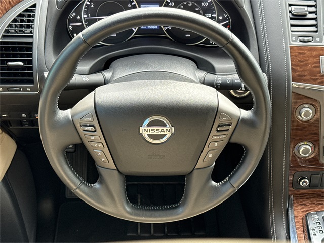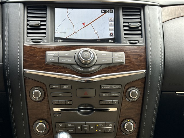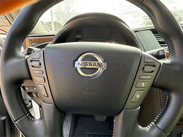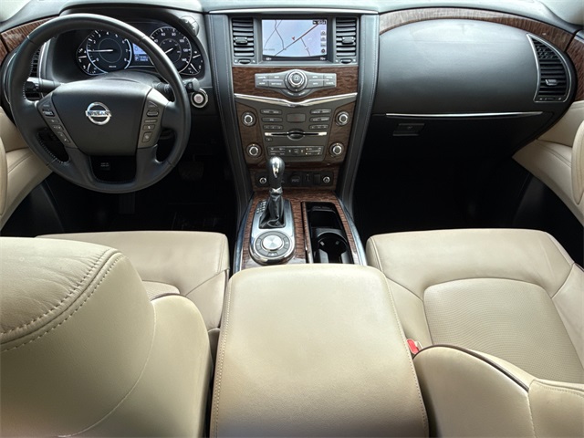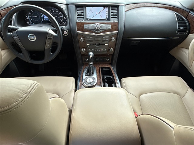 CARFAX One-Owner. 2020 Nissan Armada Platinum 4D Sport Utility Platinum Pearl White Tricoat 5.6L V8 7-Speed Automatic RWD This vehicle comes well equipped with Captain's Chairs Package (2nd Row Captain's Chairs and 2nd Row Center Console w/Padded Armrest), Cargo Package, Armada Platinum, 4D Sport Utility, 5.6L V8, 7-Speed Automatic, RWD, Pearl White Tricoat, Almond Leather, 4-Wheel Disc Brakes, ABS brakes, Anti-whiplash front head restraints, Brake assist, Delay-off headlights, Dual front impact airbags, Dual front side impact airbags, Electronic Stability Control, Emergency communication system: NissanConnect Services, Exterior Parking Camera Rear, Front anti-roll bar, Front fog lights, Fully automatic headlights, Low tire pressure warning, Navigation System, Occupant sensing airbag, Overhead airbag, Panic alarm, Power Liftgate, Power moonroof, Rear anti-roll bar, and Security system.
