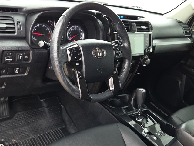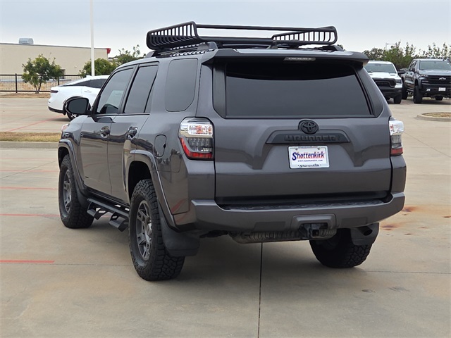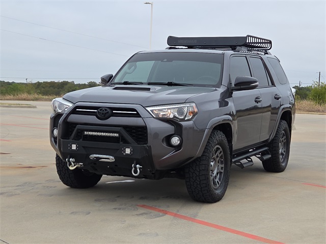 2020 Toyota 4Runner Venture 4D Sport Utility Venture Magnetic Gray Metallic 4.0L V6 SMPI DOHC 5-Speed Automatic with Overdrive 4WD This vehicle comes well equipped with Venture Package (Venture All Weather Floor Liners, Venture Cargo Tray, Venture Crossbars, and Yakima Roof Cargo Basket), 4D Sport Utility, 4.0L V6 SMPI DOHC, 5-Speed Automatic with Overdrive, 4WD, Magnetic Gray Metallic, Black/Graphite w/Nightshade Leather Seat Trim, ABS brakes, Active Cruise Control, Alloy wheels, Auto High-beam Headlights, Body Color Heated Mirrors, Bumpers: body-color, Compass, Electronic Stability Control, Exterior Parking Camera Rear, Front fog lights, Heated door mirrors, Heated front seats, Illuminated entry, Low tire pressure warning, Navigation System, Panic alarm, Power door mirrors, Remote keyless entry, Roof rack, Running Boards, Security system, Speed control, Spoiler, Traction control, and Turn signal indicator mirrors.