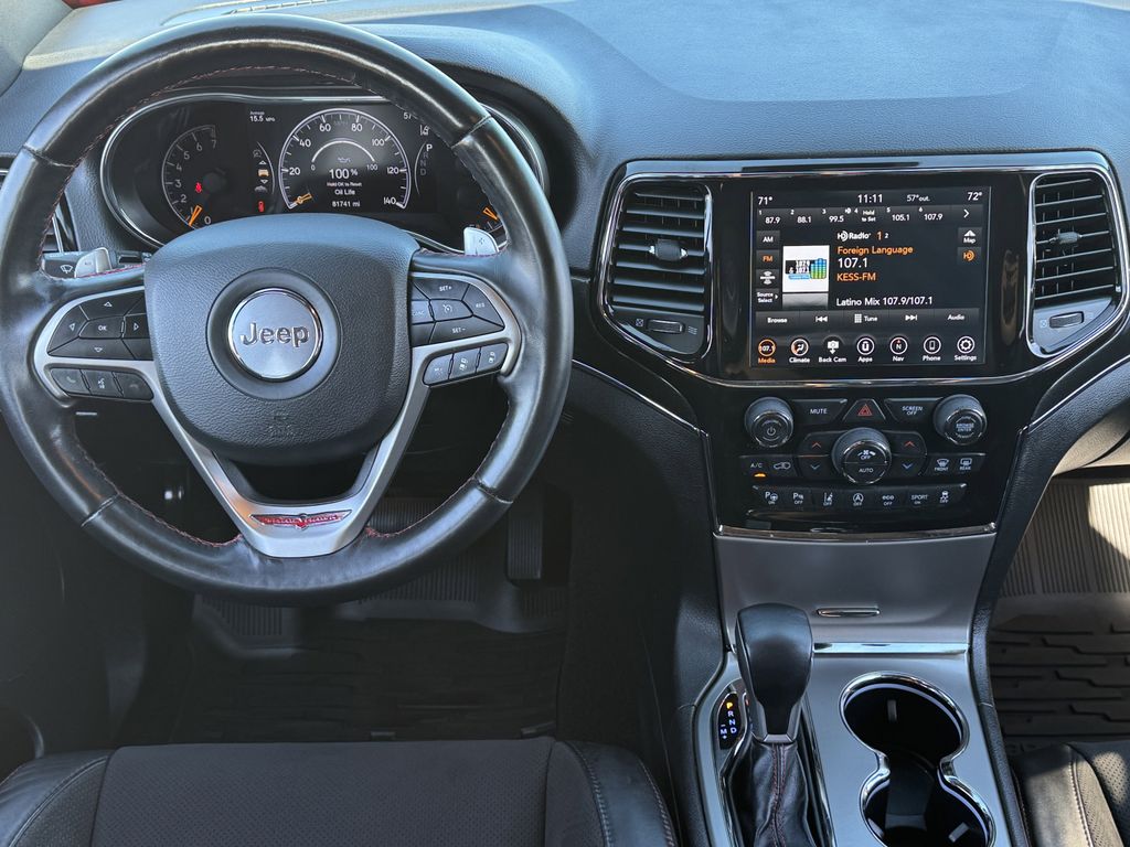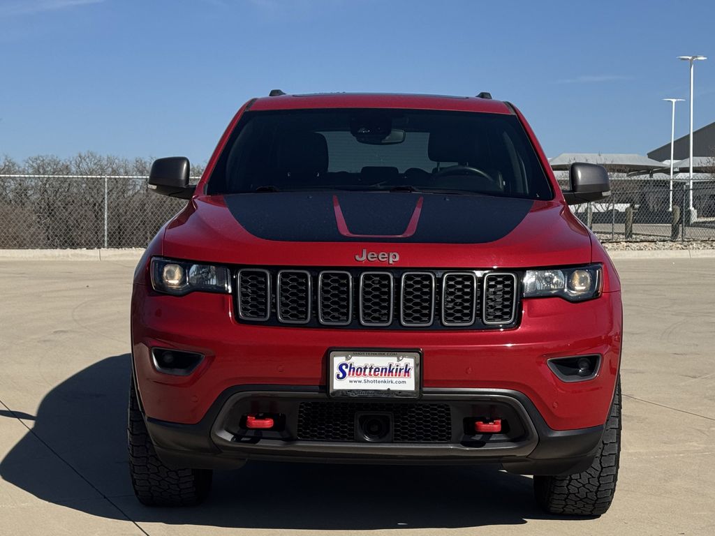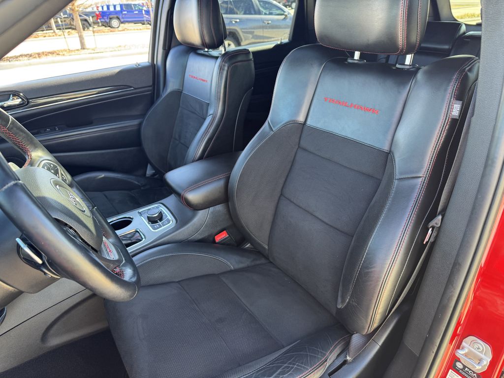 Clean CARFAX. 4WD, Bluetooth, Hands-Free Connections, Navigation / GPS / Telematics, Portable Audio Connections, Premium Audio, Backup Camera, Leather Seats, Premium Wheels, High Performance Tires, Sunroof / Moonroof, Power Liftgate, Towing Package, Grand Cherokee Trailhawk, 4D Sport Utility, 3.6L V6 24V VVT, 8-Speed Automatic, 4WD, Redline 2 Coat Pearl, Black w/Leather Trim Seats w/Edge Welting or Nappa Leather Trimmed Bucket Seats, Adaptive Cruise Control w/Stop, Advanced Brake Assist, Full Speed FWD Collision Warn Plus, GPS Navigation, Lane Departure Warning Plus, Navigation System, Parallel & Perp Park Assist w/Stop, ParkView Rear Back-Up Camera, Power Liftgate, Protech II, Quick Order Package 2BJ, Rain Sensitive Windshield Wipers.