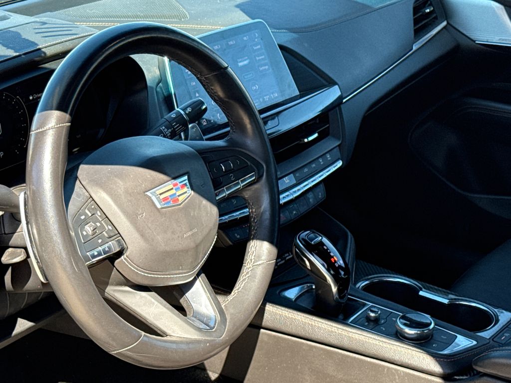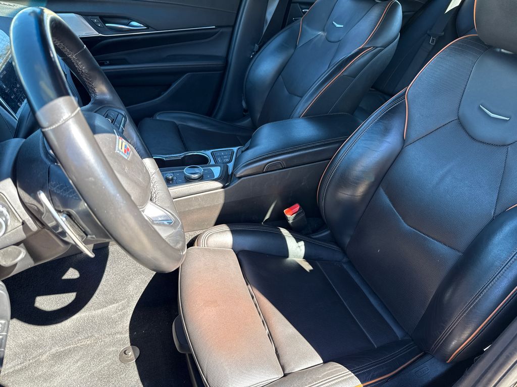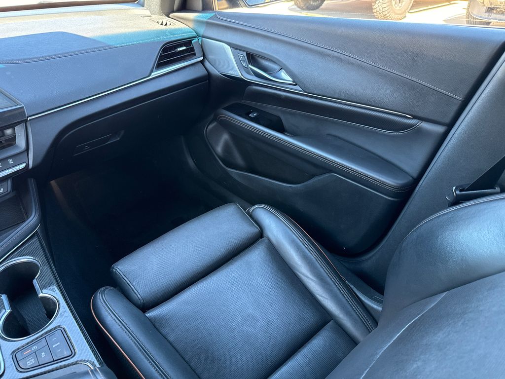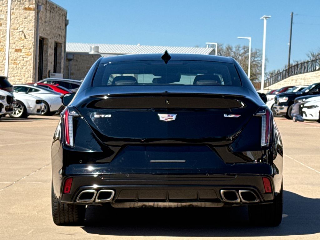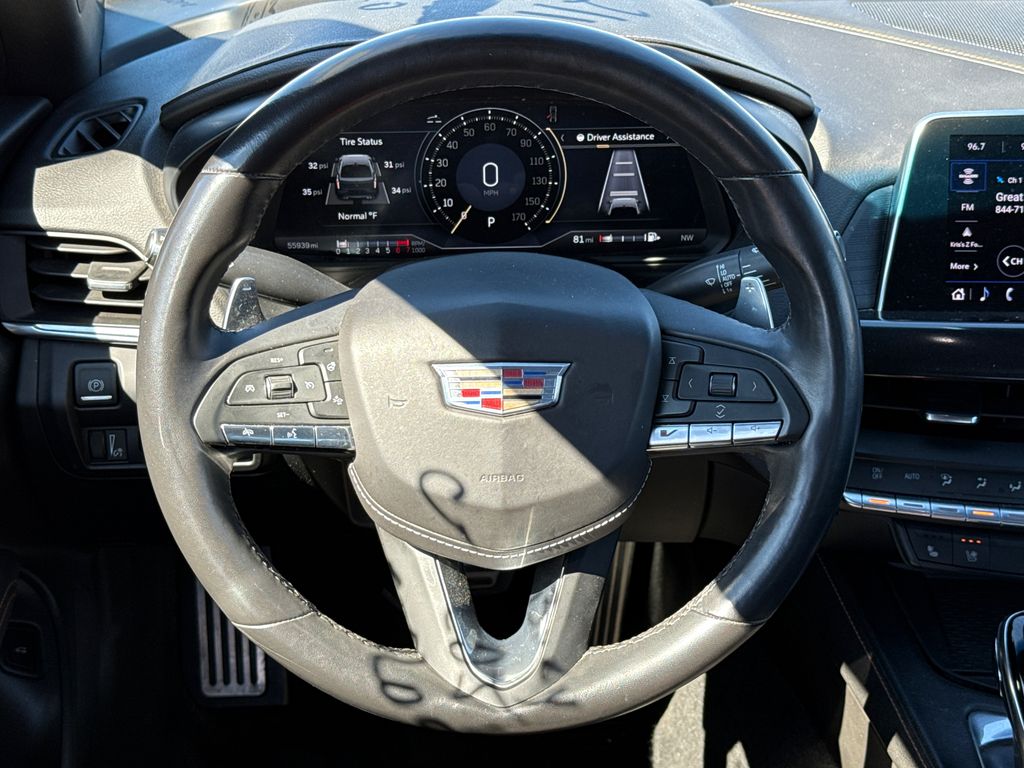 CARFAX One-Owner. 2022 Cadillac CT4 V-Series 4D Sedan Black Raven 2.7L Turbo 10-Speed Automatic RWD This vehicle comes well equipped with Climate Package (Driver Power Lumbar Massage Seat, Front Passenger Power Lumbar Massage Seat, Heated Driver & Front Passenger Seats, Heated Steering Wheel, and Ventilated Driver & Front Passenger Seats), Lighting Package (LED Front Cornering Lamps and LED Front Lamp Turn Signal), Navigation Package (Performance Data & Video Recorder), Preferred Equipment Group 1SF (Dual Digital Driver Information Center Display, HD Rear Vision Camera, Leather-Wrapped Thick Rim Steering Wheel, and LED Reflective Windshield Collision Alert), Radio: Cadillac User Experience w/Embedded Nav, Technology Package (12" Diagonal HD Color Reconfigurable Driver Display, Air Ionizer, and Head-Up Display), CT4 V-Series, 4D Sedan, 2.7L Turbo, RWD, Black Raven, and Black Leather Climate Package (Driver Power Lumbar Massage Seat, Front Passenger Power Lumbar Massage Seat, Heated Driver & Front Passenger Seats, Heated Steering Wheel, and Ventilated Driver & Front Passenger Seats), Lighting Package (LED Front Cornering Lamps and LED Front Lamp Turn Signal), Navigation Package (Performance Data & Video Recorder), Preferred Equipment Group 1SF (Dual Digital Driver Information Center Display, HD Rear Vision Camera, Leather-Wrapped Thick Rim Steering Wheel, and LED Reflective Windshield Collision Alert), Radio: Cadillac User Experience w/Embedded Nav, Technology Package (12" Diagonal HD Color Reconfigurable Driver Display, Air Ionizer, and Head-Up Display), CT4 V-Series, 4D Sedan, 2.7L Turbo, RWD, Black Raven, Black Leather, 14 Speakers, 4-Way Power Front Passenger Lumbar Seat Adjuster, 4-Wheel Disc Brakes, ABS brakes, Adaptive suspension, Air Conditioning, Alloy wheels, AM/FM radio: SiriusXM, Anti-whiplash front head restraints, Apple CarPlay/Android Auto, Auto High-beam Headlights, Auto-dimming door mirrors, Auto-dimming Rear-View mirror, Automatic Stop/Start w/Disable, Automatic temperature control, Bose Audio System Feature, Brake assist, Bumpers: body-color, Compass, Delay-off headlights, Driver 4-Way Power Lumbar Seat Adjuster, Driver door bin, Driver Seat Manual Cushion Length Adjustment, Driver Seat Power Seatback Bolster Adjustment, Driver vanity mirror, Dual front impact airbags, Dual front side impact airbags, Electronic Stability Control, Emergency communication system: OnStar and Cadillac connected services capable, Exterior Parking Camera Rear, Four wheel independent suspension, Front anti-roll bar, Front Bucket Seats, Front Center Armrest w/Storage, Front dual zone A/C, Front License Plate Bracket, Front Passenger Power Seatback Bolster Adjustment, Front Passenger Seat Manual Cushion Length Adjmt, Front reading lights, Fully automatic headlights, Garage door transmitter, HD Radio, Heated door mirrors, Illuminated entry, Knee airbag, Leather Shift Knob, Leather steering wheel, Leatherette Seats, Low tire pressure warning, Memory seat, Not Equipped w/Fr & Rr Pk Assist/Rev Auto Braking, Not Equipped w/Heated Steering Wheel (DISC), Occupant sensing airbag, Outside temperature display, Overhead airbag, Overhead console, Panic alarm, Passenger door bin, Passenger vanity mirror, Performance Front Bucket Seats, Power door mirrors, Power driver seat, Power passenger seat, Power steering, Power Sunroof w/Express Open & Venting, Power windows, Radio data system, Radio: Cadillac User Experience, Rain sensing wipers, Rear anti-roll bar, Rear reading lights, Rear seat center armrest, Rear window defroster, Remote keyless entry, SiriusXM w/360L, Speed control, Speed-sensing steering, Split folding rear seat, Spoiler, Sport steering wheel, Steering wheel mounted audio controls, Tachometer, Telescoping steering wheel, Tilt steering wheel, Traction control, Trip computer, Turn signal indicator mirrors, Variably intermittent wipers, Voltmeter, Wheels: 18" Aluminum Alloy w/Pearl Nickel Finish, and Wheels: 18" Aluminum Alloy w/Satin Gra