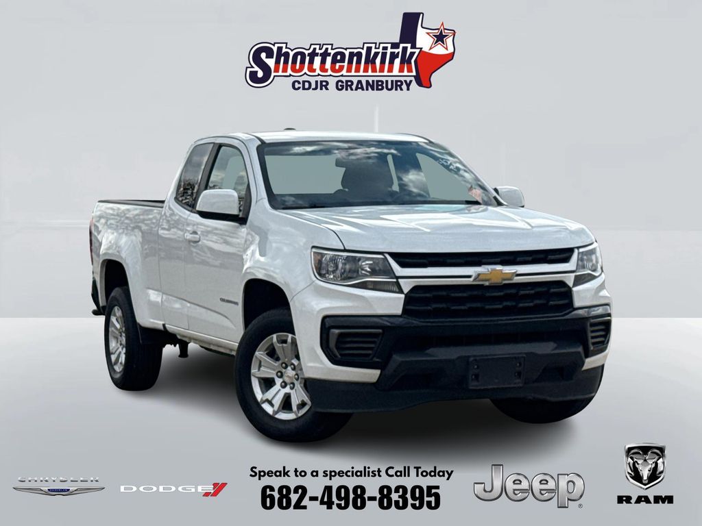 CARFAX One-Owner. 2022 Chevrolet Colorado LT Summit White 2.5L I4 DI DOHC VVT 6-Speed Automatic RWD This vehicle comes well equipped with Preferred Equipment Group 2LT (Enhanced Driver Instrument Information Display and Rear Vision Camera), Safety Package (Forward Collision Alert, Lane Departure Warning System, and Ultrasonic Rear Park Assist), Colorado LT, 2.5L I4 DI DOHC VVT, RWD, Summit White, and Jet Black Cloth Preferred Equipment Group 2LT (Enhanced Driver Instrument Information Display and Rear Vision Camera), Safety Package (Forward Collision Alert, Lane Departure Warning System, and Ultrasonic Rear Park Assist), Colorado LT, 2.5L I4 DI DOHC VVT, RWD, Summit White, Jet Black Cloth, 4-Wheel Disc Brakes, 4.10 Rear Axle Ratio, 6 Speakers, 6-Speaker Audio System Feature, ABS brakes, Air Conditioning, Alloy wheels, AM/FM radio: SiriusXM, Apple CarPlay/Android Auto, Auto-dimming Rear-View mirror, Automatic Locking Rear Differential, Bumpers: body-color, Cloth Seat Trim, Compass, Delay-off headlights, Driver 6-Way Power Seat Adjuster, Driver door bin, Driver vanity mirror, Dual front impact airbags, Dual front side impact airbags, Electronic Stability Control, Exterior Parking Camera Rear, Front anti-roll bar, Front Bucket Seats, Front Center Armrest, Front License Plate Kit, Front reading lights, Front wheel independent suspension, Fully automatic headlights, Illuminated entry, Low tire pressure warning, Not Equipped w/Hood Insulator (DISC), Occupant sensing airbag, Outside temperature display, Overhead airbag, Overhead console, Panic alarm, Passenger door bin, Passenger vanity mirror, Power door mirrors, Power driver seat, Power steering, Power windows, Premium audio system: Chevrolet Infotainment 3, Radio data system, Radio: Chevrolet Infotainment 3 System, Rear step bumper, Remote keyless entry, Security system, SiriusXM Radio, Speed control, Speed-sensing steering, Split folding rear seat, Steering wheel mounted audio controls, Tachometer, Telescoping steering wheel, Tilt steering wheel, Traction control, Trip computer, Variably intermittent wipers, and Wheels: 17" x 8" Blade Silver Metallic Cast Alloy. For more information contact one of our Internet Managers at 682-498-8390 to set up your VIP Test Drive.. At SHOTTENKIRK CDJR Granbury located in Granbury, TX all of our Pre-Owned vehicles go through a 100 point plus inspection. The oil and filter are changed, complete brake inspection, tire rotation, safety inspection and all fluid levels are topped off. If we find anything that needs attention we address the issue and fix it. So buy with confidence that you are getting a quality vehicle. We can do a complete walk around for you over the phone. Trade ins are always welcomed. We offer financing from over 25 finance and credit unions locally and nationally. SHOTTENKIRK CDJR 4970 E HWY 377 GRANBURY TEXAS 76049.