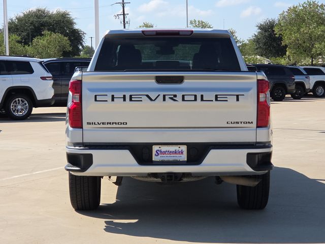 CARFAX One-Owner. 2022 Chevrolet Silverado 1500 Custom 4D Crew Cab Silver Ice Metallic 2.7L Turbo 8-Speed Automatic 4WD This vehicle comes well equipped with Custom Convenience Package (Electric Rear-Window Defogger, EZ Lift Power Lock & Release Tailgate, LED Cargo Area Lighting, and Remote Vehicle Starter System), Custom Value Package, Dark Essentials Package (LPO) (Black Name Plates (LPO)), High Capacity Suspension Package, Preferred Equipment Group 1CX (10-Way Power Driver Seat w/Lumbar, 120-Volt Bed Mounted Power Outlet, 120-Volt Instrument Panel Power Outlet, 3.5" Monochromatic Display Driver Info Center, Bluetooth® For Phone, Chevrolet Connected Access Capable, Color-Keyed Carpeting Floor Covering, Compass, Deep-Tinted Glass, Dual Rear USB Ports (Charge Only), Electrical Steering Column Lock, Electronic Cruise Control, Front Frame-Mounted Black Recovery Hooks, Front Rubberized Vinyl Floor Mats, HD Rear Vision Camera, Manual Tilt Wheel Steering Column, OnStar & Chevrolet Connected Services Capable, Power Front Windows w/Driver Express Up/Down, Power Front Windows w/Passenger Express Down, Power Rear Windows w/Express Down, Rear 60/40 Folding Bench Seat (Folds Up), Rear Rubberized-Vinyl Floor Mats, Remote Keyless Entry, SiriusXM Radio, Standard Tailgate, Theft Deterrent System (Unauthorized Entry), Wi-Fi Hot Spot Capable, and Wireless Phone Projection), Trailering Package (Hitch Guidance), Silverado 1500 Custom, 4D Crew Cab, 2.7L Turbo, 8-Speed Automatic, 4WD, Silver Ice Metallic, and Black Cloth Custom Convenience Package (Electric Rear-Window Defogger, EZ Lift Power Lock & Release Tailgate, LED Cargo Area Lighting, and Remote Vehicle Starter System), Custom Value Package, Dark Essentials Package (LPO) (Black Name Plates (LPO)), High Capacity Suspension Package, Preferred Equipment Group 1CX (10-Way Power Driver Seat w/Lumbar, 120-Volt Bed Mounted Power Outlet, 120-Volt Instrument Panel Power Outlet, 3.5" Monochromatic Display Driver Info Center, Bluetooth® For Phone, Chevrolet Connected Access Capable, Color-Keyed Carpeting Floor Covering, Compass, Deep-Tinted Glass, Dual Rear USB Ports (Charge Only), Electrical Steering Column Lock, Electronic Cruise Control, Front Frame-Mounted Black Recovery Hooks, Front Rubberized Vinyl Floor Mats, HD Rear Vision Camera, Manual Tilt Wheel Steering Column, OnStar & Chevrolet Connected Services Capable, Power Front Windows w/Driver Express Up/Down, Power Front Windows w/Passenger Express Down, Power Rear Windows w/Express Down, Rear 60/40 Folding Bench Seat (Folds Up), Rear Rubberized-Vinyl Floor Mats, Remote Keyless Entry, SiriusXM Radio, Standard Tailgate, Theft Deterrent System (Unauthorized Entry), Wi-Fi Hot Spot Capable, and Wireless Phone Projection), Trailering Package (Hitch Guidance), Silverado 1500 Custom, 4D Crew Cab, 2.7L Turbo, 8-Speed Automatic, 4WD, Silver Ice Metallic, Black Cloth, 3.42 Rear Axle Ratio, 4-Wheel Disc Brakes, 40/20/40 Front Split-Bench Seat, 6 Speakers, 6-Speaker Audio System, ABS brakes, Air Conditioning, Alloy wheels, AM/FM radio: SiriusXM, Apple CarPlay/Android Auto, Auto High-beam Headlights, Auto-Locking Rear Differential, Automatic Emergency Braking, Black Tailgate CHEVROLET Lettering (LPO), Brake assist, Bumpers: body-color, Chevytec Spray-On Black Bedliner, Cloth Seat Trim, Delay-off headlights, Driver door bin, Driver vanity mirror, Dual front impact airbags, Dual front side impact airbags, Electronic Stability Control, Following Distance Indicator, Forward Collision Alert, Front anti-roll bar, Front Black Bowtie Emblem (LPO), Front Center Armrest w/Storage, Front License Plate Kit, Front Pedestrian Braking, Front reading lights, Front wheel independent suspension, Fully automatic headlights, Heated door mirrors, Illuminated entry, IntelliBeam Automatic High Beam On/Off, Lane Keep Assist w/Lane Departure Warning, Low tire pressure warning, Not Equipped w/Rear USB Ports, Not Equipped w/Steering Column Lock, Occupant sensing airbag, Outside tempe