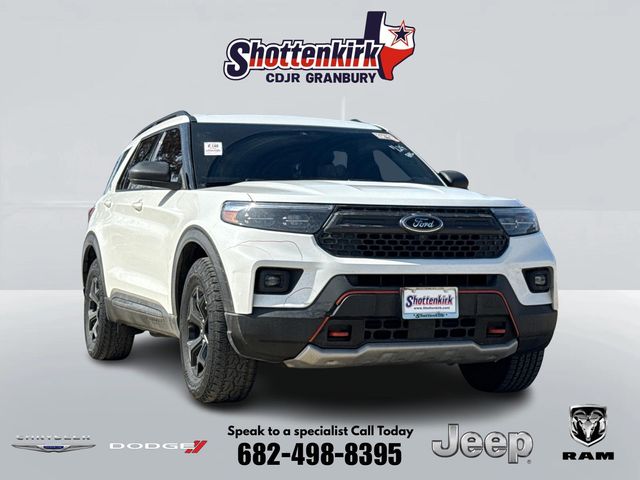 CARFAX One-Owner. 2022 Ford Explorer Timberline 4D Sport Utility Star White Metallic Tri-Coat 2.3L EcoBoost I-4 10-Speed Automatic 4WD This vehicle comes well equipped with Equipment Group 800A, Explorer Timberline, 4D Sport Utility, 2.3L EcoBoost I-4, 4WD, Star White Metallic Tri-Coat, and Ebony Cloth Equipment Group 800A, Explorer Timberline, 4D Sport Utility, 2.3L EcoBoost I-4, 4WD, Star White Metallic Tri-Coat, Ebony Cloth, 1st Row Heated Seats, 2nd Row 35/30/35 Bench w/E-Z Entry & Armrest, 3.58 Torsen Limited Slip Rear Axle, 3rd row seats: bench, 4-Wheel Disc Brakes, 6 Speakers, ABS brakes, ActiveX Seat Material Captain's Charis, Air Conditioning, Alloy wheels, AM/FM radio: SiriusXM, AM/FM Stereo, Auto High-beam Headlights, Auto Start-Stop Removal, Automatic temperature control, Brake assist, Bumpers: body-color, Compass, Delay-off headlights, Driver door bin, Driver vanity mirror, Dual front impact airbags, Dual front side impact airbags, Electronic Stability Control, Emergency communication system: SYNC 3 911 Assist, Exterior Parking Camera Rear, FordPass Connect, Four wheel independent suspension, Front anti-roll bar, Front Bucket Seats, Front Center Armrest, Front dual zone A/C, Front fog lights, Front reading lights, Fully automatic headlights, Heated door mirrors, Heated front seats, Heated rear seats, Heated steering wheel, Illuminated entry, Knee airbag, Leather steering wheel, Low tire pressure warning, Navigation System, Occupant sensing airbag, Outside temperature display, Overhead airbag, Overhead console, Panic alarm, Passenger door bin, Passenger vanity mirror, Power door mirrors, Power driver seat, Power Liftgate, Power passenger seat, Power steering, Power windows, Rear air conditioning, Rear anti-roll bar, Rear Auxiliary Controls Credit, Rear reading lights, Rear window defroster, Rear window wiper, Remote keyless entry, Roof rack: rails only, Security system, SelectShift Capability w/Paddle Shifters, Speed control, Speed-sensing steering, Speed-Sensitive Wipers, Split folding rear seat, Spoiler, Sport steering wheel, Steering wheel mounted audio controls, SYNC 3 Communications & Entertainment System, SYNC 3/Apple CarPlay/Android Auto, Tachometer, Telescoping steering wheel, Tilt steering wheel, Traction control, Trip computer, Twin Panel Moonroof, Variably intermittent wipers, Voice-Activated Touchscreen Navigation System, and Wheels: 18" High Gloss Black-Painted Aluminum. For more information contact one of our Internet Managers at 682-498-8390 to set up your VIP Test Drive.. At SHOTTENKIRK CDJR Granbury located in Granbury, TX all of our Pre-Owned vehicles go through a 100 point plus inspection. The oil and filter are changed, complete brake inspection, tire rotation, safety inspection and all fluid levels are topped off. If we find anything that needs attention we address the issue and fix it. So buy with confidence that you are getting a quality vehicle. We can do a complete walk around for you over the phone. Trade ins are always welcomed. We offer financing from over 25 finance and credit unions locally and nationally. SHOTTENKIRK CDJR 4970 E HWY 377 GRANBURY TEXAS 76049.