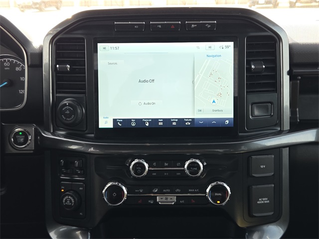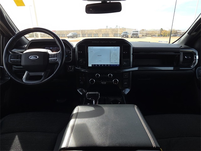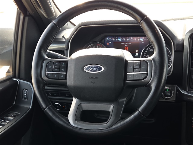 CARFAX One-Owner. 2022 Ford F-150 XLT 4D SuperCrew XLT Space White Metallic 5.0L V8 10-Speed Automatic 4WD This vehicle comes well equipped with Equipment Group 302A High (10-Way Power Driver & Passenger Seats, 8" Productivity Screen in Instrument Cluster, Auto-Dimming Rear-View Mirror, Class IV Trailer Hitch Receiver, Dual Zone Electronic Automatic Temperature Control, Heated Front Seats, Intelligent Access w/Push Button Start, Leather-Wrapped Steering Wheel, LED Reflector Headlamps, LED Sideview Mirror Spotlights, Onboard 400W Outlet, Power Glass Heated Sideview Mirrors, Radio: AM/FM SiriusXM w/360L, Rear Under-Seat Storage, Remote Start System w/Remote Tailgate Release, SecuriCode Drivers Side Keyless-Entry Keypad, SYNC 4 w/Enhanced Voice Recognition, and Zone Lighting), Ford Co-Pilot360 Assist 2.0 (DISC) (Connected Built-In Navigation (DISC), Evasive Steering Assist, Intelligent Adaptive Cruise Control w/Stop & Go, Intersection Assist, and Speed Sign Recognition), FX4 Off-Road Package (4x4 FX4 Off-Road Bodyside Decal, Hill Descent Control, Monotube Rear Shocks, Off-Road Tuned Front Shock Absorbers, Rock Crawl Mode, and Tray Style Floor Liner (47W)), Trailer Tow Package (Integrated Trailer Brake Controller and Pro Trailer Backup Assist), XLT Chrome Appearance Package (2-Bar Style Grille w/Chrome 2 Minor Bars, Bright Polished Step Bars, Chrome Door & Tailgate Handles w/Body-Color Bezel, Chrome Single-Tip Exhaust, and Wheels: 18" Chrome-Like PVD), XLT Sport Appearance Package (Accent-Color Step Bars, Black 2-Bar Style Grille w/Black Surround/Accents, Body-Color Door & Tailgate Handles, Body-Color Front & Rear Bumpers, Box Side Decals, Unique Sport Cloth 40/Console/40 Front-Seats, and Wheels: 18" 6-Spoke Machined Aluminum), F-150 XLT, 4D SuperCrew, 5.0L V8, 10-Speed Automatic, 4WD, Space White Metallic, Black Cloth, Bumpers: chrome, Heated door mirrors, Power door mirrors, and Rear step bumper.