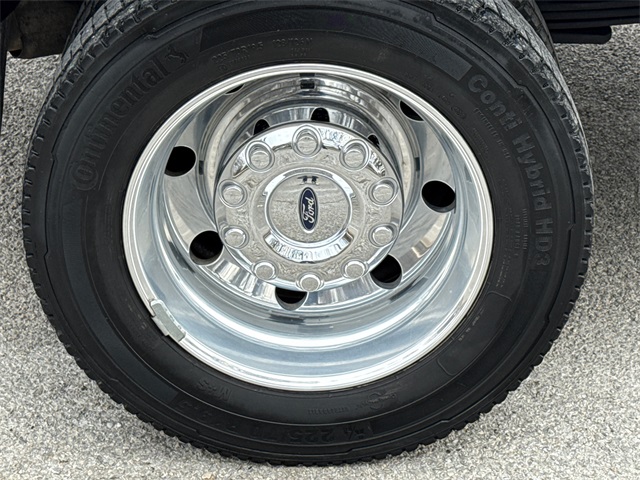 - 19.5 x 6-inch front and dual rear polished forged aluminum wheels