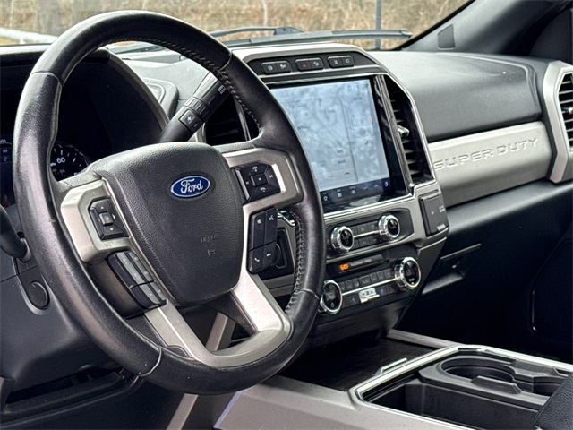 2022 Ford F-450SD White 4D Crew Cab 4WD Lariat 10-Speed Automatic F-450 SuperDuty Lariat DRW, Power Stroke 6.7L V8 DI 32V OHV Turbodiesel, 4WD, Black Onyx Leather, 19.5" Forged Polished Aluminum Wheels, Dual rear wheels, Fully automatic headlights, FX4 Off-Road Package, GVWR: 14,000 lb Payload Package, Heated front seats, Hill Descent Control, King Ranch Ultimate Package, Lane Departure Warning System, Leather Seating Surfaces 40/20/40 Split Bench Seat, Limited Slip w/4.30 Axle Ratio, Memory seat, Multi-Contour Seats, Navigation System, Off-Road Specifically Tuned Shock Absorbers, Order Code 678A, Power-Deployable Running Boards, Pro Trailer Backup Assist, Quad Beam LED Headlamps & LED Taillamps, Twin Panel Power Moonroof, Ultimate Trailer Tow Camera System, Unique FX4 Off-Road Box Decal. Odometer is 22681 miles below market average! Power Stroke 6.7L V8 DI 32V OHV Turbodiesel