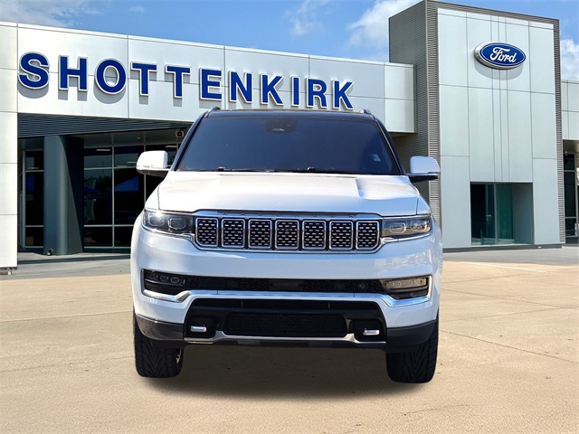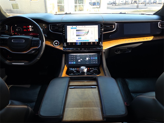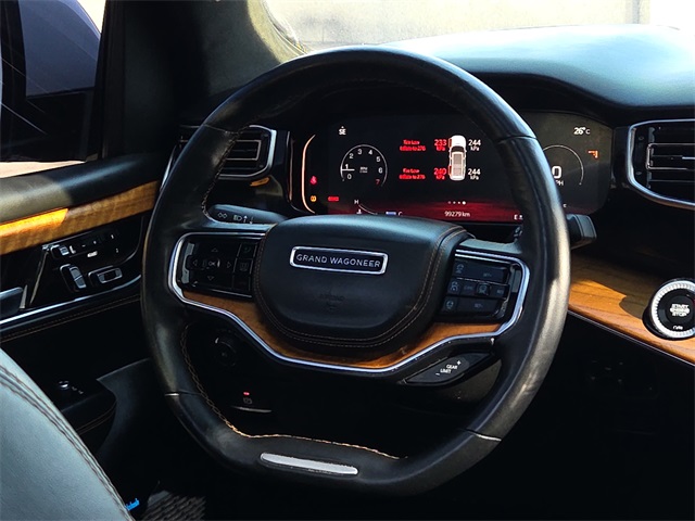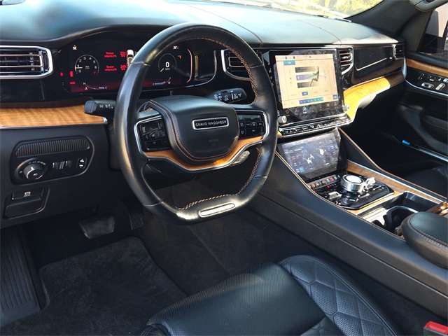 2022 Jeep Grand Wagoneer Bright White Clearcoat 4D Sport Utility 4WD Series III 8-Speed Automatic Local Trade In, Grand Wagoneer Series III, 4D Sport Utility, 6.4L V8, 4WD, Bright White Clearcoat, Global Black Leather, 3.92 Rear Axle Ratio, 3rd row seats: bench, Auto-dimming door mirrors, Auto-dimming Rear-View mirror, Auto-leveling suspension, Chrome Tow Hooks, Driver's Seat Mounted Armrest, Four wheel independent suspension, Fully automatic headlights, Garage door transmitter, Genuine wood console insert, Genuine wood dashboard insert, Genuine wood door panel insert, HD Trailer Tow Package, Heads-Up Display, Heated door mirrors, Heated front seats, Heated rear seats, Heavy-Duty Engine Cooling, Memory seat, Navigation System, Night vision lights, Pedal memory, Power door mirrors, Power Liftgate, Power moonroof, Premium Leather Trimmed Bucket Seats, Quick Order Package 23W, Radio: Uconnect 5 Nav w/12.0" Display, Reclining 3rd row seat, Removable Rear Tow Hook, Split folding rear seat, Trailer Brake Control, Trailer Hitch Line-Up Assist, Trailer Hitch Zoom, Two Tone Paint Group, Ventilated front seats, Ventilated rear seats, Wheels: 22" x 9.0" Painted Aluminum. Priced below KBB Fair Purchase Price! 6.4L V8