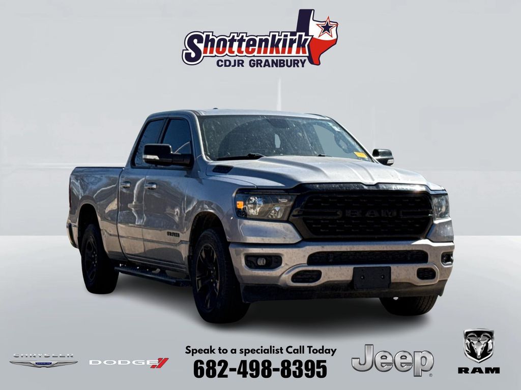 2022 Ram 1500 Big Horn/Lone Star 4D Quad Cab Billet Silver Metallic Clearcoat HEMI 5.7L V8 Multi Displacement VVT 8-Speed Automatic RWD This vehicle comes well equipped with Big Horn Level 2 Equipment Group (115V Auxiliary Power Outlet, 115V Auxiliary Rear Power Outlet, 400W Inverter, 4G LTE Wi-Fi Hot Spot, 8.4" Touchscreen Display, Air Conditioning ATC w/Dual Zone Control, Apple CarPlay, Auto-Dimming Exterior Driver Mirror, Auto-Dimming Rear-View Mirror, Black Exterior Mirrors, Black Premium Power Mirrors, Bluetooth Handsfree Phone & Audio, Class IV Receiver Hitch, Cluster 7.0" TFT Color Display, Connectivity - US/Canada, Convex Wide-Angle Mirror Insert, Exterior Mirrors Courtesy Lamps, Exterior Mirrors w/Heating Element, Exterior Mirrors w/Supplemental Signals, For Details, Visit DriveUconnect.com, For More Info, Call 800-643-2112, Global Telematics Box Module (TBM), Glove Box Lamp, Google Android Auto, GPS Antenna Input, Heated Front Seats, Heated Steering Wheel, Integrated Center Stack Radio, Media Hub w/2 Charge Only USBs, ParkSense Front/Rear Park Assist w/Stop, Power 2-Way Driver Lumbar Adjust, Power 8-Way Driver Seat, Power Adjustable Pedals, Power-Folding Mirrors, Radio: Uconnect 5 W w/8.4" Display, Rear Dome w/On/Off Switch Lamp, Rear Power Sliding Window, Rear Window Defroster, Remote Start System, Security Alarm, SiriusXM Radio Service, SiriusXM Satellite Radio, Sun Visors w/Illuminated Vanity Mirrors, Universal Garage Door Opener, and USB Host Flip), Night Edition (3 Rear Seat Head Restraints, 4 Way Front Headrests, Accent Color Premium Power Mirrors, Anti-Spin Differential Rear Axle, Black Exterior Truck Badging, Black Headlamp Bezels, Black Interior Accents, Black Painted Exterior Mirrors Caps, Body Color Front Bumper, Body Color Rear Bumper w/Step Pads, Bucket Seats, Delete LED Lamp - Floor Console Bin, Deluxe Cloth Bucket Seats, Dual Exhaust w/Black Tips, Front Seat Back Map Pockets, Full Length Floor Console, Manual Adjust 4-Way Front Passenger Seat, Rear 60/40 Folding Seat, and Wheels: 20" x 9.0" Premium Paint/Polished), Quick Order Package 25R Lone Star (Regional) (Lone Star Badge), 1500 Big Horn/Lone Star, 4D Quad Cab, HEMI 5.7L V8 Multi Displacement VVT, RWD, Billet Silver Metallic Clearcoat, and Black Cloth Big Horn Level 2 Equipment Group (115V Auxiliary Power Outlet, 115V Auxiliary Rear Power Outlet, 400W Inverter, 4G LTE Wi-Fi Hot Spot, 8.4" Touchscreen Display, Air Conditioning ATC w/Dual Zone Control, Apple CarPlay, Auto-Dimming Exterior Driver Mirror, Auto-Dimming Rear-View Mirror, Black Exterior Mirrors, Black Premium Power Mirrors, Bluetooth Handsfree Phone & Audio, Class IV Receiver Hitch, Cluster 7.0" TFT Color Display, Connectivity - US/Canada, Convex Wide-Angle Mirror Insert, Exterior Mirrors Courtesy Lamps, Exterior Mirrors w/Heating Element, Exterior Mirrors w/Supplemental Signals, For Details, Visit DriveUconnect.com, For More Info, Call 800-643-2112, Global Telematics Box Module (TBM), Glove Box Lamp, Google Android Auto, GPS Antenna Input, Heated Front Seats, Heated Steering Wheel, Integrated Center Stack Radio, Media Hub w/2 Charge Only USBs, ParkSense Front/Rear Park Assist w/Stop, Power 2-Way Driver Lumbar Adjust, Power 8-Way Driver Seat, Power Adjustable Pedals, Power-Folding Mirrors, Radio: Uconnect 5 W w/8.4" Display, Rear Dome w/On/Off Switch Lamp, Rear Power Sliding Window, Rear Window Defroster, Remote Start System, Security Alarm, SiriusXM Radio Service, SiriusXM Satellite Radio, Sun Visors w/Illuminated Vanity Mirrors, Universal Garage Door Opener, and USB Host Flip), Night Edition (3 Rear Seat Head Restraints, 4 Way Front Headrests, Accent Color Premium Power Mirrors, Anti-Spin Differential Rear Axle, Black Exterior Truck Badging, Black Headlamp Bezels, Black Interior Accents, Black Painted Exterior Mirrors Caps, Body Color Front Bumper, Body Color Rear Bumper w/Step Pads, Bucket Seats, Delete LED Lamp - Floor Console Bin, Deluxe Cloth Bucket Seats, Dual Exhaust w/Black Tips,