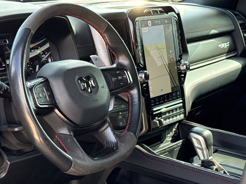 2022 Ram 1500 TRX 4D Crew Cab Bright White Clearcoat 6.2L Supercharged HEMI V8 SRT 8-Speed Automatic 4WD This vehicle comes well equipped with Bed Utility Group (MOPAR 4 Adjustable Cargo Tie-Down Hooks, MOPAR Deployable Bed Step, and MOPAR Spray In Bedliner), Quick Order Package 29Y, Trailer Tow Group (Trailer Brake Control, Trailer Light Check, and Trailer Tire Pressure Monitoring System), TRX Carbon Fiber Package (Leather/Carbon Flat-Bottom Steering Wheel and Real Carbon Fiber Interior Accents), TRX Level 2 Equipment Group (#2 Seat Foam Cushion, 2-Door Passive Entry, Front Door Locks, 4 Way Front Headrests, Blind Spot & Cross Path Detection, Body Color Door Handles, Bucket Seats, Center Console Parts Module, Digital Rearview Mirror, Driver Seat Memory, Driver/Passenger Wrapped Assist Handles, Exterior Mirrors w/Memory, Front Door Accent Lighting, Front Seat Back Map Pockets, Full Length Premium Upgraded Floor Console, harman/kardon 19 Speaker Premium Sound, Heads-Up Display, Heated Front Seats, Heated Second Row Seats, Heated Steering Wheel, IP LED Ambient Light Pipe, Leather Trimmed Bucket Seats, Leather/Suede Flat-Bottom Steering Wheel, LED CHMSL Lamp, Luxury Front Door Trim Panel, MOPAR Bright Pedal Kit, ParkSense Front/Rear Park Assist w/Stop, Pick-Up Box Lighting, Power 4-Way Driver Lumbar Adjust, Power 4-Way Passenger Lumbar Adjust, Power 8-Way Driver & Passenger Seats, Power Adjustable Pedals w/Memory, Premium Wrapped IP Bezel, Radio/Driver Seat/Mirrors/Pedals Memory, Rain Sensitive Windshield Wipers, Rear 60/40 Folding Seat, Rear 60/40 Folding Split Recline Seat, Rear Door Accent Lighting, Rear Underseat Compartment Storage, Rear Window Defroster, Remote Tailgate Release, Sun Visors w/Illuminated Vanity Mirrors, Surround View Camera System, Universal Garage Door Opener, Ventilated Front Seats, Ventilated Rear Seats, and Wireless Charging Pad), 1500 TRX, 4D Crew Cab, 6.2L Supercharged HEMI V8 SRT, 4WD, Bright White Clearcoat, and Black Leather Bed Utility Group (MOPAR 4 Adjustable Cargo Tie-Down Hooks, MOPAR Deployable Bed Step, and MOPAR Spray In Bedliner), Quick Order Package 29Y, Trailer Tow Group (Trailer Brake Control, Trailer Light Check, and Trailer Tire Pressure Monitoring System), TRX Carbon Fiber Package (Leather/Carbon Flat-Bottom Steering Wheel and Real Carbon Fiber Interior Accents), TRX Level 2 Equipment Group (#2 Seat Foam Cushion, 2-Door Passive Entry, Front Door Locks, 4 Way Front Headrests, Blind Spot & Cross Path Detection, Body Color Door Handles, Bucket Seats, Center Console Parts Module, Digital Rearview Mirror, Driver Seat Memory, Driver/Passenger Wrapped Assist Handles, Exterior Mirrors w/Memory, Front Door Accent Lighting, Front Seat Back Map Pockets, Full Length Premium Upgraded Floor Console, harman/kardon 19 Speaker Premium Sound, Heads-Up Display, Heated Front Seats, Heated Second Row Seats, Heated Steering Wheel, IP LED Ambient Light Pipe, Leather Trimmed Bucket Seats, Leather/Suede Flat-Bottom Steering Wheel, LED CHMSL Lamp, Luxury Front Door Trim Panel, MOPAR Bright Pedal Kit, ParkSense Front/Rear Park Assist w/Stop, Pick-Up Box Lighting, Power 4-Way Driver Lumbar Adjust, Power 4-Way Passenger Lumbar Adjust, Power 8-Way Driver & Passenger Seats, Power Adjustable Pedals w/Memory, Premium Wrapped IP Bezel, Radio/Driver Seat/Mirrors/Pedals Memory, Rain Sensitive Windshield Wipers, Rear 60/40 Folding Seat, Rear 60/40 Folding Split Recline Seat, Rear Door Accent Lighting, Rear Underseat Compartment Storage, Rear Window Defroster, Remote Tailgate Release, Sun Visors w/Illuminated Vanity Mirrors, Surround View Camera System, Universal Garage Door Opener, Ventilated Front Seats, Ventilated Rear Seats, and Wireless Charging Pad), 1500 TRX, 4D Crew Cab, 6.2L Supercharged HEMI V8 SRT, 4WD, Bright White Clearcoat, Black Leather, 10 Speakers, 3.55 Rear Axle Ratio, 4-Wheel Disc Brakes, ABS brakes, Adaptive suspension, Air Conditioning, Alloy wheels, AM/FM radio: SiriusXM with 360L, Apple CarPlay/Andr