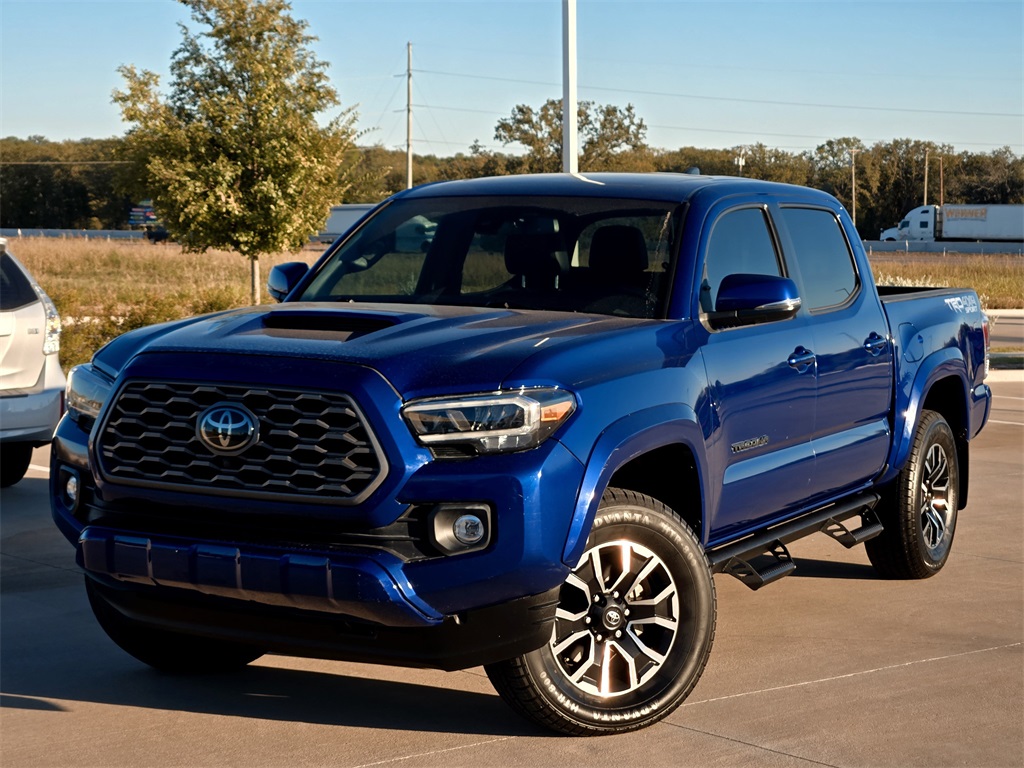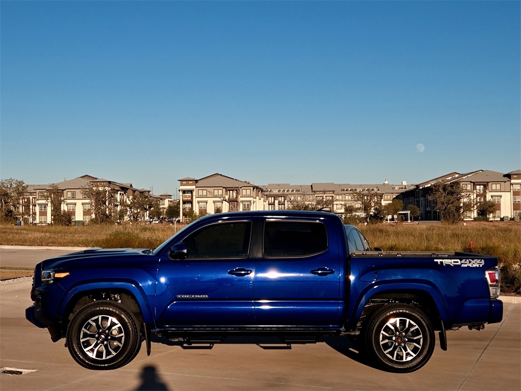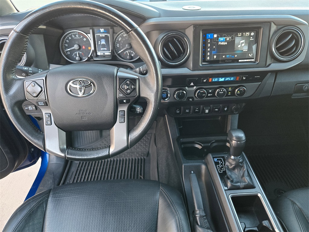 CARFAX One-Owner. Clean CARFAX. 4WD, Bluetooth, Hands-Free Connections, Navigation / GPS / Telematics, Portable Audio Connections, Premium Audio, Backup Camera, Premium Wheels, High Performance Tires, Towing Package, Tacoma TRD Sport V6, 4D Double Cab, 3.5L V6 PDI DOHC 24V LEV3-ULEV70 278hp, 6-Speed, 4WD, Blue Crush Metallic, Black/Gun Metal w/Leather Seat Trim, 120V/400W Deck Mounted AC Power, ABS brakes, Alloy wheels, Black Chrome Exhaust Tip (TMS), Black Out Package (TMS), Blackout Emblem Overlays (TMS), Color-Keyed Overfenders, Electronic Stability Control, Engine Immobilizer, Front dual zone A/C, Heated door mirrors, Illuminated entry, Low tire pressure warning, Power Sliding Rear Window w/Privacy Glass, Remote keyless entry, Tailgate Emblem (TMS), Traction control, TRD Sport Package.