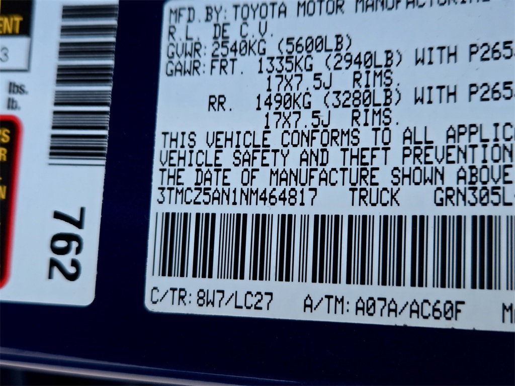 2022 Blue Crush Metallic Toyota Tacoma 3.5L V6 PDI DOHC 24V LEV3-ULEV70 278hp 4WD TRD Sport