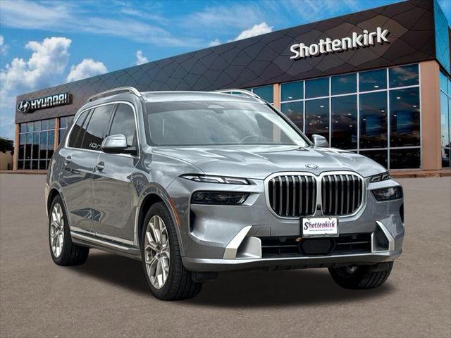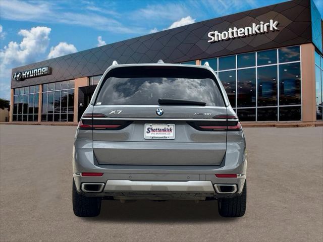 Clean CARFAX. Priced below KBB Fair Purchase Price! X7 xDrive40i, 3.0L I6 DOHC 24V, AWD, Gray Metallic, Black Leather, Adaptive suspension, Apple CarPlay & Android Auto Compatibility, Apple CarPlay Compatibility, Auto High-beam Headlights, Auto-leveling suspension, Brake assist, Connected Package Pro, Delay-off headlights, Electronic Stability Control, Emergency communication system: BMW Assist eCall, Exterior Parking Camera Rear, Front Ventilated Seats, Garage door transmitter, harman/kardon Surround Sound System, Head restraints memory, Heads-Up Display, Heated front seats, Hi-Fi Sound System, Knee airbag, Memory seat, Navigation system: BMW Maps Navigation, Power moonroof: Panorama, Soft-Close Automatic Doors. This vehicle comes well equipped with Connected Package Pro, X7 xDrive40i, 3.0L I6 DOHC 24V, AWD, Gray Metallic, Black Leather, Adaptive suspension, Apple CarPlay & Android Auto Compatibility, Apple CarPlay Compatibility, Auto High-beam Headlights, Auto-leveling suspension, Brake assist, Delay-off headlights, Electronic Stability Control, Emergency communication system: BMW Assist eCall, Exterior Parking Camera Rear, Front Ventilated Seats, Garage door transmitter, harman/kardon Surround Sound System, Head restraints memory, Heads-Up Display, Heated front seats, Hi-Fi Sound System, Knee airbag, Memory seat, Navigation system: BMW Maps Navigation, Power moonroof: Panorama, and Soft-Close Automatic Doors Connected Package Pro, X7 xDrive40i, 3.0L I6 DOHC 24V, AWD, Gray Metallic, Black Leather, Adaptive suspension, Apple CarPlay & Android Auto Compatibility, Apple CarPlay Compatibility, Auto High-beam Headlights, Auto-leveling suspension, Brake assist, Delay-off headlights, Electronic Stability Control, Emergency communication system: BMW Assist eCall, Exterior Parking Camera Rear, Front Ventilated Seats, Garage door transmitter, harman/kardon Surround Sound System, Head restraints memory, Heads-Up Display, Heated front seats, Hi-Fi Sound System, Knee airbag, Memory seat, Navigation system: BMW Maps Navigation, Power moonroof: Panorama, Soft-Close Automatic Doors, 10 Speakers, 3.64 Axle Ratio, 3rd row seats: split-bench, 4-Wheel Disc Brakes, 5-Zone Automatic Climate Control, ABS brakes, Air Conditioning, Alloy wheels, Aluminum Running Boards, AM/FM radio: SiriusXM, AM/FM Stereo, Auto tilt-away steering wheel, Auto-dimming door mirrors, Auto-dimming Rear-View mirror, Automatic temperature control, BMW Assist eCall, BMW TeleServices, Bumpers: body-color, Compass, ConnectedDrive Services, Driver door bin, Driver vanity mirror, Dual front impact airbags, Dual front side impact airbags, Four wheel independent suspension, Front & Rear Heated Seats, Front anti-roll bar, Front Bucket Seats, Front Center Armrest, Front dual zone A/C, Front reading lights, Fully automatic headlights, Genuine wood console insert, Genuine wood dashboard insert, Genuine wood door panel insert, Gesture Control, Heated door mirrors, Heated Multi-Contour Seats, Heated steering wheel, Illuminated entry, Live Cockpit Pro w/Navi, Low tire pressure warning, Occupant sensing airbag, Outside temperature display, Overhead airbag, Panic alarm, Parking Assistant Professional, Passenger door bin, Passenger vanity mirror, Personal eSIM 5G, Power adjustable front head restraints, Power door mirrors, Power driver seat, Power Front Seats, Power passenger seat, Power steering, Power windows, Radio data system, Rain sensing wipers, Rear air conditioning, Rear anti-roll bar, Rear dual zone A/C, Rear Electric Side Window Shades, Rear reading lights, Rear seat center armrest, Rear window defroster, Rear window wiper, Reclining 3rd row seat, Remote keyless entry, Security system, Sensafin Upholstery, SiriusXM Satellite Radio, Speed control, Speed-sensing steering, Speed-Sensitive Wipers, Split folding rear seat, Spoiler, Sport steering wheel, Steering wheel memory, Steering wheel mounted audio controls, Surround View w/3D View, Tachometer, Telescoping steering wheel, Tilt s