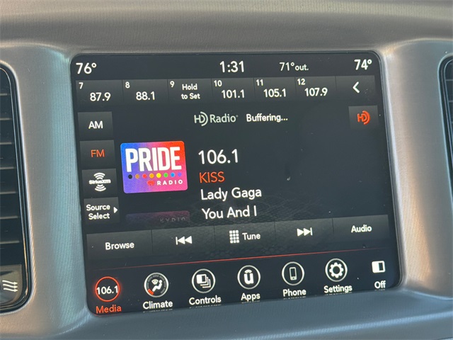 CARFAX One-Owner. 2023 Dodge Charger GT 4D Sedan GT Triple Nickel Clearcoat 3.6L V6 24V VVT 8-Speed Automatic RWD This vehicle comes well equipped with Blacktop Package (Black 1-Piece Performance Spoiler, Black Badge, Black Dodge Grille Badge, Gloss Black I/P Cluster Trim Rings, Rhombi 2-Pc Wheel Center Cap, Satin Black Charger Decklid Badge, Satin Black Dodge Tail Lamp Badge, and Wheels: 20" x 8" Black Noise Painted), Quick Order Package 2EH, Technology Group (Adaptive Cruise Control w/Stop, Advanced Brake Assist, Auto High Beam Headlamp Control, Full Speed FWD Collision Warn Plus, Lane Departure Warning Plus, and Rain Sensitive Windshield Wipers), Charger GT, 4D Sedan, 3.6L V6 24V VVT, 8-Speed Automatic, RWD, Triple Nickel Clearcoat, Black Cloth, Bumpers: body-color, Delay-off headlights, Front License Plate Bracket, Fully automatic headlights, Heated door mirrors, Panic alarm, ParkView Rear Back-Up Camera, and Speed control.