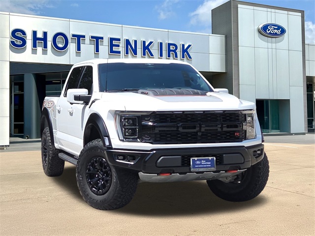 Certified. Clean CARFAX. 2023 Ford F-150 Oxford White 4D SuperCrew 4WD Raptor 10-Speed Automatic F-150 Raptor, 4D SuperCrew, 5.2L V8, 4WD, Oxford White, Black Leather, 17" Forged Aluminum Bead-Lock Capable Wheels, Auto High-beam Headlights, Auto-dimming Rear-View mirror, Black Exterior Accents, Carbon Fiber Interior Appliques, Code Orange Stitching Doors & Instrument Panel, Code Orange Tow Hooks, Electronic Locking w/4.10 Axle Ratio, Equipment Group 802A Raptor R, Exterior Parking Camera Rear, First Aid Kit w/Ford Logo, Front Bucket Seats, Garage door transmitter, GVWR: 7,300 lbs Payload Package, GVWR: 7,450 lbs Payload Package, Inclination/Intrusion Sensor Removal, Interior Code Orange Raptor R Badging, Lane Departure Warning System, Leather Trim Seats w/Heated 2nd Row, Memory seat, Moonroof & Tailgate, Partitioned Lockable Fold-Flat Storage, Pedal memory, Power driver seat, Power Tailgate, Radio: B&O Unleashed Sound System by Bang & Olufsen, Raptor 37 Graphics, Raptor R Badge Tailgate Applique, Raptor R Exterior Graphics, Recaro Black w/Orange Stitching Front Seats, SYNC 4 w/Enhanced Voice Recognition, Tough Bed Spray-In Bedliner, Twin Panel Moonroof, Unique Hood Vent w/R Badge, Unique Raptor R Grille w/R Badge, Wheels: Unique 17" Forged Aluminum Bead-Lock Capable. 5.2L V8Ford Gold Certified Details: * Transferable Warranty * Limited Warranty: 12 Month/12,000 Mile (whichever comes first) after new car warranty expires or from certified purchase date * and 22,000 FordPass Rewards Points to use toward first two maintenance visits * Warranty Deductible: $100 * Roadside Assistance * Powertrain Limited Warranty: 84 Month/100,000 Mile (whichever comes first) from original in-service date * Vehicle History * 172 Point InspectionThank you for making your way to Shottenkirk Ford, your certified Ford dealer serving drivers throughout Granbury, Fort Worth, Burleson, Weatherford, Cleburne, Glen Rose, Godley, Tolar, Stephenville, Joshua, Aledo, Mineral Wells, Arlington, Dallas, Keller, Hico, Clifton, Hillsboro, Waxahachie, Waco and the surrounding areas. At our dealership, you’ll find a solid selection of new Fords for sale, as well as a carefully inspected lineup of pre-owned vehicles. We also have a well-connected finance center run by a qualified team of finance experts, who can help you get the right loan or lease in a quick, easy, and transparent manner.
