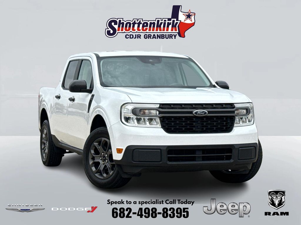Clean CARFAX. CARFAX One-Owner. 2023 Ford Maverick XLT 4D Crew Cab Oxford White 2.5L I-4 Hybrid CVT FWD This vehicle comes well equipped with Maverick XLT, 4D Crew Cab, 2.5L I-4 Hybrid, FWD, Oxford White, Navy Pier / Medium Slate Cloth, Bumpers: body-color, Power steering, Power windows, Remote keyless entry, Steering wheel mounted audio controls, and Traction control Maverick XLT, 4D Crew Cab, 2.5L I-4 Hybrid, FWD, Oxford White, Navy Pier / Medium Slate Cloth, Bumpers: body-color, Power steering, Power windows, Remote keyless entry, Steering wheel mounted audio controls, Traction control, 2.91 Axle Ratio, 4-Wheel Disc Brakes, 4G LTE Wi-Fi Hotspot Removal, 6 Speakers, ABS brakes, Air Conditioning, AM/FM radio, Apple CarPlay/Android Auto, Auto High-beam Headlights, Automatic temperature control, Brake assist, Compass, Delay-off headlights, Driver door bin, Driver vanity mirror, Dual front impact airbags, Dual front side impact airbags, Electronic Stability Control, Exterior Parking Camera Rear, Front anti-roll bar, Front Bucket Seats, Front Center Armrest, Front reading lights, Front wheel independent suspension, Fully automatic headlights, Illuminated entry, Knee airbag, Low tire pressure warning, Occupant sensing airbag, Outside temperature display, Overhead airbag, Overhead console, Panic alarm, Passenger door bin, Passenger vanity mirror, Radio data system, Radio: AM/FM Stereo w/6 Speakers, Rear anti-roll bar, Rear step bumper, Speed control, Speed-sensing steering, Telescoping steering wheel, Tilt steering wheel, Trailer Hitch Receiver w/4-Pin Connector, and Trip computer. For more information contact one of our Internet Managers at 682-498-8390 to set up your VIP Test Drive.. At SHOTTENKIRK CDJR Granbury located in Granbury, TX all of our Pre-Owned vehicles go through a 100 point plus inspection. The oil and filter are changed, complete brake inspection, tire rotation, safety inspection and all fluid levels are topped off. If we find anything that needs attention we address the issue and fix it. So buy with confidence that you are getting a quality vehicle. We can do a complete walk around for you over the phone. Trade ins are always welcomed. We offer financing from over 25 finance and credit unions locally and nationally. SHOTTENKIRK CDJR 4970 E HWY 377 GRANBURY TEXAS 76049.