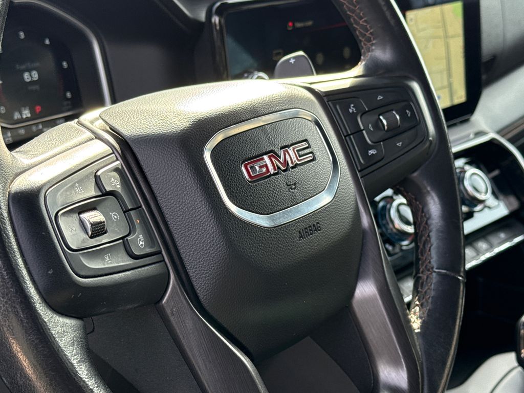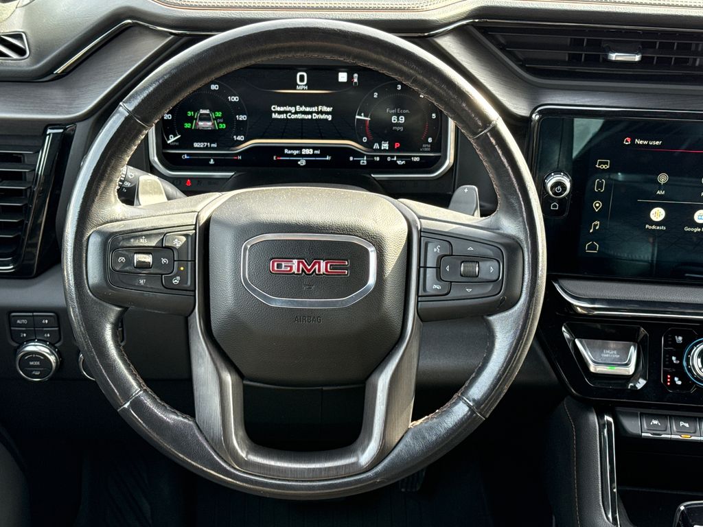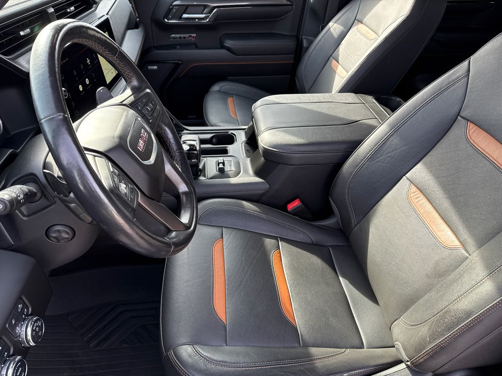 Clean CARFAX. 2023 GMC Sierra 1500 AT4 4D Crew Cab Onyx Black 3.0L I6 10-Speed Automatic 4WD This vehicle comes well equipped with AT4 Preferred Package (Adaptive Cruise Control, Power Sliding Rear Window w/Rear Defogger, and Universal Home Remote), Preferred Equipment Group 4SB (120-Volt Bed Mounted Power Outlet, 120-Volt Instrument Panel Power Outlet, 2 Charge/Data USB Ports Inside Center Console, 2 Type-C Charge-Only Rear USB Ports, 2 USB Ports, 220 Amp Alternator, Auto-Locking Rear Differential, Black Chrome Header & Grille Insert Bars, Color-Keyed Carpeting Floor Covering, Compass, Deep-Tinted Glass, Electric Rear-Window Defogger, Electrical Steering Column Lock, Floor-Mounted Center Console, Front Prem Floor Liners w/Removable Carpet Insert, Front Rainsensing Wipers, GMC Connected Access Capable, HD Surround Vision, Heated 2nd Row Outboard Seats, Heated Driver & Front Outboard Passenger Seating, Heavy-Duty Air Filter, Hill Descent Control, Hitch Guidance w/Hitch View, In-Vehicle Trailering App, Integrated Trailer Brake Controller, Keyless Open & Start, LED Cargo Area Lighting, OnStar & GMC Connected Services Capable, Perimeter Lighting, Power Door Locks, Power Front Passenger Windows w/Express Up/Down, Power Front Windows w/Driver Express Up/Down, Power Rake & Telescoping Steering Column, Power Rear Windows w/Express Down, Premium Bose 7-Speaker Sound System, Push Button Start, Rear Cross Traffic Braking, Rear Pedestrian Detection, Rear Prem Floor Liners w/Removable Carpet Insert, Rear Wheelhouse Liners, Red Recovery Hooks, Remote Vehicle Starter System, SiriusXM w/360L, Spray-On Pickup Bed Liner w/AT4 Logo, Steering Wheel Audio Controls, Theft Deterrent System (Unauthorized Entry), Trailer Camera Provisions, Trailer Side Blind Zone Alert, Ultrasonic Front & Rear Park Assist, Ventilated Driver & Front Passenger Seats, Wi-Fi Hotspot Capable, Wireless Charging, and Wireless Phone Projection), Trailering Package (Hitch Guidance), Sierra 1500 AT4, 4D Crew Cab, Onyx Black, 18" x 8.5" Machined Aluminum Wheels, 4-Wheel Disc Brakes, ABS brakes, All-Weather Floor Liners w/AT4 Logo (LPO), Apple CarPlay/Android Auto, Auto High-beam Headlights, Auto-dimming door mirrors, Auto-dimming Rear-View mirror, Automatic Emergency Braking, Automatic temperature control, Black Sport Step (LPO), Block heater, Buckle to Drive, Bumpers: body-color, Delay-off headlights, Driver Memory, Dual front impact airbags, Dual front side impact airbags, Engine Block Heater, Front fog lights, Fully automatic headlights, Heated door mirrors, IntelliBeam Automatic High Beam On/Off, Memory seat, Navigation System, Off-Road Suspension, Power door mirrors, Power driver seat, Power steering, Power windows, Rear step bumper, Remote keyless entry, Speed-sensing steering, Steering wheel mounted audio controls, Traction control, and Wheels: 20" x 9" Machined Aluminum AT4 Preferred Package (Adaptive Cruise Control, Power Sliding Rear Window w/Rear Defogger, and Universal Home Remote), Preferred Equipment Group 4SB (120-Volt Bed Mounted Power Outlet, 120-Volt Instrument Panel Power Outlet, 2 Charge/Data USB Ports Inside Center Console, 2 Type-C Charge-Only Rear USB Ports, 2 USB Ports, 220 Amp Alternator, Auto-Locking Rear Differential, Black Chrome Header & Grille Insert Bars, Color-Keyed Carpeting Floor Covering, Compass, Deep-Tinted Glass, Electric Rear-Window Defogger, Electrical Steering Column Lock, Floor-Mounted Center Console, Front Prem Floor Liners w/Removable Carpet Insert, Front Rainsensing Wipers, GMC Connected Access Capable, HD Surround Vision, Heated 2nd Row Outboard Seats, Heated Driver & Front Outboard Passenger Seating, Heavy-Duty Air Filter, Hill Descent Control, Hitch Guidance w/Hitch View, In-Vehicle Trailering App, Integrated Trailer Brake Controller, Keyless Open & Start, LED Cargo Area Lighting, OnStar & GMC Connected Services Capable, Perimeter Lighting, Power Door Locks, Power Front Passenger Windows w/Express Up/Down, Power Front Windows w/Dri