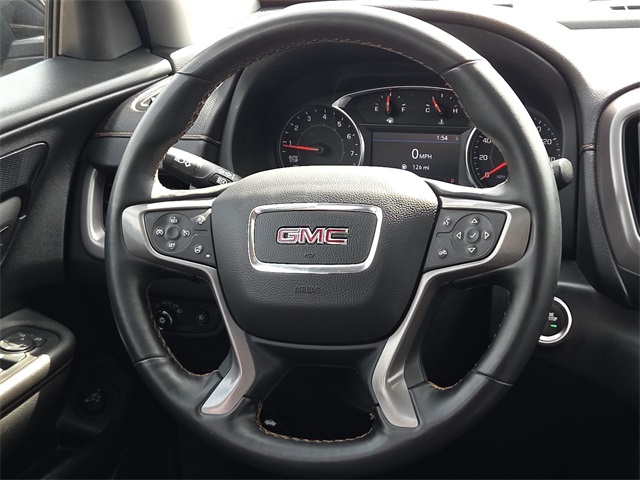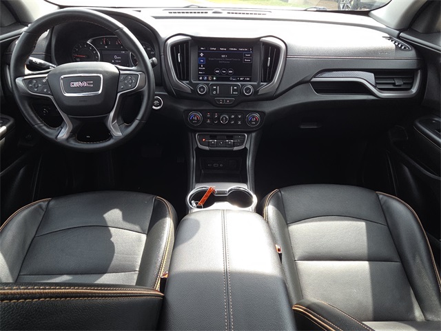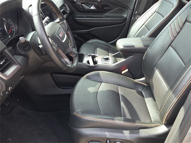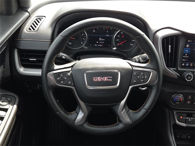 CARFAX One-Owner. Clean CARFAX. Priced below KBB Fair Purchase Price! 24/28 City/Highway MPG APPLE CAR PLAY, ANDROID AUTO, ALLOY WHEELS, Terrain AT4, 9-Speed Automatic, AWD, Black Leather, 2 USB Data Ports, 2 USB Data Ports w/SD Card Reader, 6-Speaker Audio System Feature, 8-Way Power Driver Seat Adjuster, Auto High-beam Headlights, Bluetooth® For Phone, Brake assist, Delay-off headlights, Electronic Stability Control, Emergency communication system: OnStar and GMC connected services capable, Fully automatic headlights, Power Driver Lumbar Control, Power Liftgate, Preferred Equipment Group 4SC, Radio: GMC Infotainment Audio System w/8" Display, SiriusXM Radio, Wireless Apple CarPlay/Wireless Android Auto. This vehicle comes well equipped with Preferred Equipment Group 4SC, Terrain AT4, 9-Speed Automatic, AWD, Black Leather, 2 USB Data Ports, 2 USB Data Ports w/SD Card Reader, 6-Speaker Audio System Feature, 8-Way Power Driver Seat Adjuster, Auto High-beam Headlights, Bluetooth® For Phone, Brake assist, Delay-off headlights, Electronic Stability Control, Emergency communication system: OnStar and GMC connected services capable, Fully automatic headlights, Power Driver Lumbar Control, Power Liftgate, Radio: GMC Infotainment Audio System w/8" Display, SiriusXM Radio, and Wireless Apple CarPlay/Wireless Android Auto Preferred Equipment Group 4SC, Terrain AT4, 9-Speed Automatic, AWD, Black Leather, 2 USB Data Ports, 2 USB Data Ports w/SD Card Reader, 6-Speaker Audio System Feature, 8-Way Power Driver Seat Adjuster, Auto High-beam Headlights, Bluetooth® For Phone, Brake assist, Delay-off headlights, Electronic Stability Control, Emergency communication system: OnStar and GMC connected services capable, Fully automatic headlights, Power Driver Lumbar Control, Power Liftgate, Radio: GMC Infotainment Audio System w/8" Display, SiriusXM Radio, Wireless Apple CarPlay/Wireless Android Auto, 3.47 Axle Ratio, 4-Wheel Disc Brakes, 6 Speakers, 6-Way Power Front Passenger Seat, ABS brakes, Air Conditioning, Alloy wheels, AM/FM radio: SiriusXM, Auto-dimming Rear-View mirror, Automatic temperature control, Bumpers: body-color, Compass, Deleted 3 Years of OnStar & Connected Services Plan, Driver & Front Passenger Heated Seats, Driver door bin, Driver vanity mirror, Dual front impact airbags, Dual front side impact airbags, Four wheel independent suspension, Front anti-roll bar, Front Bucket Seats, Front Center Armrest, Front dual zone A/C, Front fog lights, Front Passenger 2-Way Power Lumbar, Front reading lights, Garage door transmitter, Heated door mirrors, Heated front seats, Heated steering wheel, Illuminated entry, Lane Departure Warning System, Low tire pressure warning, Memory seat, Occupant sensing airbag, Outside temperature display, Overhead airbag, Overhead console, Panic alarm, Passenger door bin, Passenger vanity mirror, Perforated Leather-Appointed Seat Trim w/AT4 Logo, Power door mirrors, Power driver seat, Power passenger seat, Power steering, Power windows, Radio data system, Rear anti-roll bar, Rear seat center armrest, Rear window defroster, Rear window wiper, Remote keyless entry, Roof rack: rails only, Security system, Speed control, Speed-sensing steering, Split folding rear seat, Spoiler, Steering wheel mounted audio controls, Tachometer, Telescoping steering wheel, Tilt steering wheel, Traction control, Trip computer, Turn signal indicator mirrors, Variably intermittent wipers, and Wheels: 17" x 7" Gloss Black Aluminum.