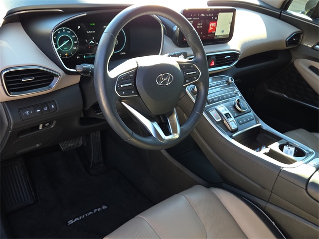CARFAX One-Owner. 33/30 City/Highway MPG Santa Fe Hybrid Limited, 4D Sport Utility, 6-Speed Automatic with Shiftronic, AWD, Twilight Black, Beige Leather, Apple CarPlay & Android Auto, Auto High-beam Headlights, Auto-dimming Rear-View mirror, Brake assist, Delay-off headlights, Electronic Stability Control, Exterior Parking Camera Rear, Fully automatic headlights, Garage door transmitter: HomeLink, harman/kardon® Speakers, Heated steering wheel, Memory seat, Navigation System, Option Group 01, Power driver seat, Power Liftgate, Power moonroof. This vehicle comes well equipped with Option Group 01, Santa Fe Hybrid Limited, 4D Sport Utility, 6-Speed Automatic with Shiftronic, AWD, Twilight Black, Beige Leather, Apple CarPlay & Android Auto, Auto High-beam Headlights, Auto-dimming Rear-View mirror, Brake assist, Delay-off headlights, Electronic Stability Control, Exterior Parking Camera Rear, Fully automatic headlights, Garage door transmitter: HomeLink, harman/kardon® Speakers, Heated steering wheel, Memory seat, Navigation System, Power driver seat, Power Liftgate, and Power moonroof Option Group 01, Santa Fe Hybrid Limited, 4D Sport Utility, 6-Speed Automatic with Shiftronic, AWD, Twilight Black, Beige Leather, Apple CarPlay & Android Auto, Auto High-beam Headlights, Auto-dimming Rear-View mirror, Brake assist, Delay-off headlights, Electronic Stability Control, Exterior Parking Camera Rear, Fully automatic headlights, Garage door transmitter: HomeLink, harman/kardon® Speakers, Heated steering wheel, Memory seat, Navigation System, Power driver seat, Power Liftgate, Power moonroof, 12 Speakers, 3.510 Axle Ratio, 4-Wheel Disc Brakes, ABS brakes, Air Conditioning, Alloy wheels, AM/FM radio: SiriusXM, Automatic temperature control, Bumpers: body-color, Cargo Cover/Screen, Cargo Net, Cargo Tray, Carpeted Floor Mats, Driver door bin, Driver vanity mirror, Dual front impact airbags, Dual front side impact airbags, Emergency communication system, First Aid Kit, Four wheel independent suspension, Front anti-roll bar, Front Bucket Seats, Front Center Armrest, Front dual zone A/C, Front reading lights, Heated & Ventilated Front Bucket Seats, Heated door mirrors, Heated front seats, Heated rear seats, Illuminated entry, Leather Seat Trim, Leather steering wheel, Low tire pressure warning, Occupant sensing airbag, Outside temperature display, Overhead airbag, Overhead console, Panic alarm, Passenger door bin, Passenger vanity mirror, Power door mirrors, Power passenger seat, Power steering, Power windows, Radio: AM/FM Harman Kardon Audio, Rain sensing wipers, Rear anti-roll bar, Rear seat center armrest, Rear window defroster, Rear window wiper, Remote keyless entry, Security system, Speed control, Speed-sensing steering, Split folding rear seat, Spoiler, Steering wheel mounted audio controls, Tachometer, Telescoping steering wheel, Tilt steering wheel, Traction control, Trip computer, Turn signal indicator mirrors, Variably intermittent wipers, Ventilated front seats, Wheel Locks, and Wheels: 19" x 7.5J Alloy.
