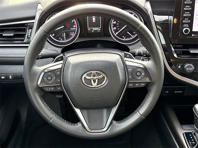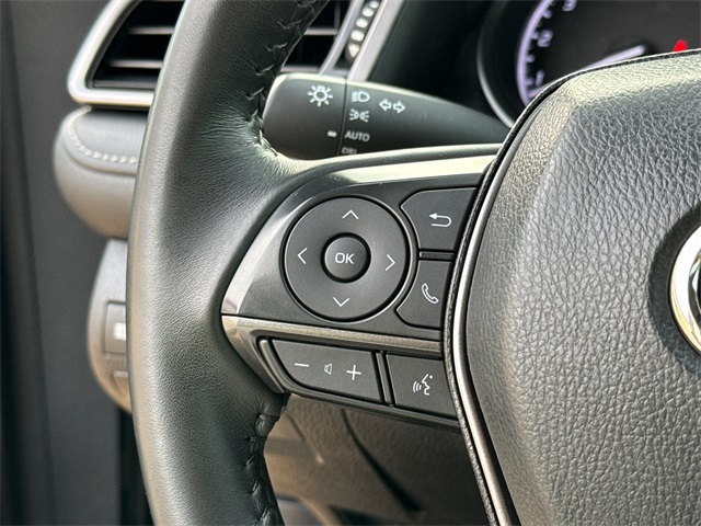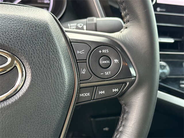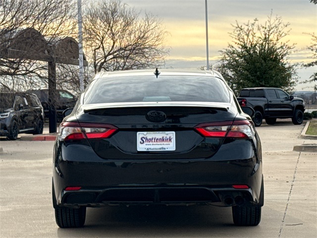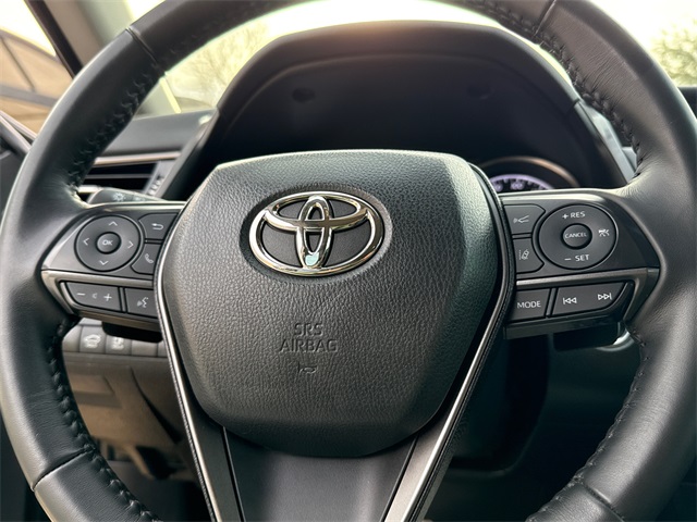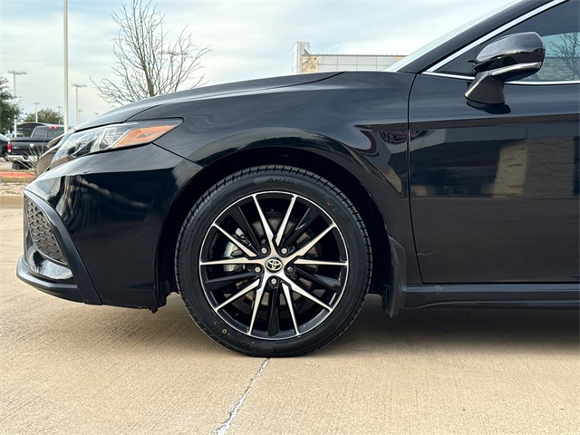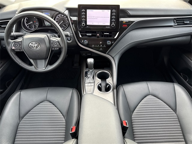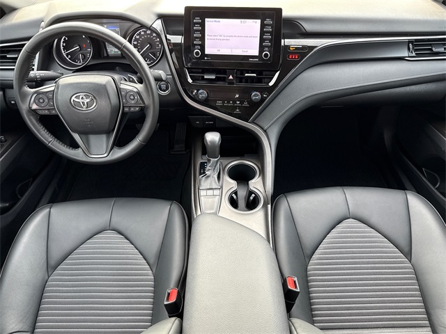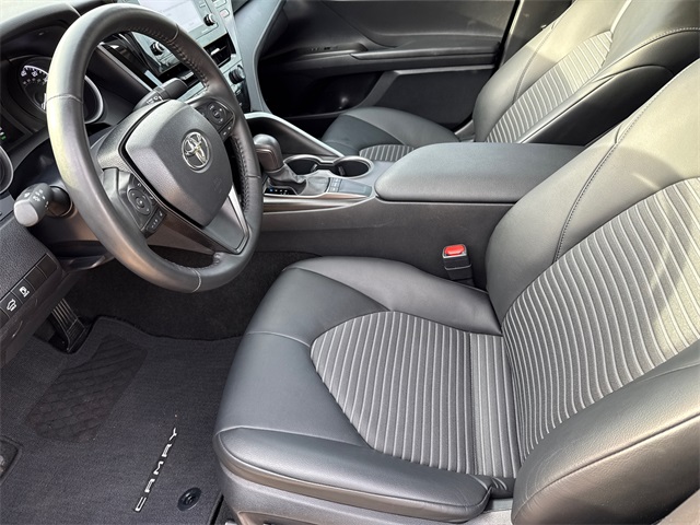 CARFAX One-Owner. 2023 Toyota Camry SE 4D Sedan SE Midnight Black Metallic 2.5L I4 DOHC 16V 8-Speed Automatic FWD This vehicle comes well equipped with 4D Sedan, 2.5L I4 DOHC 16V, 8-Speed Automatic, FWD, Black w/Sport SofTex Seat Trim w/Fabric Inserts, ABS brakes, Active Cruise Control, Alloy wheels, Auto High-beam Headlights, Brake assist, Bumpers: body-color, Delay-off headlights, Electronic Stability Control, Exterior Parking Camera Rear, Front dual zone A/C, Fully automatic headlights, Heated door mirrors, Illuminated entry, Low tire pressure warning, Panic alarm, Power door mirrors, Remote keyless entry, Security system, Speed control, Spoiler, Traction control, and Turn signal indicator mirrors.