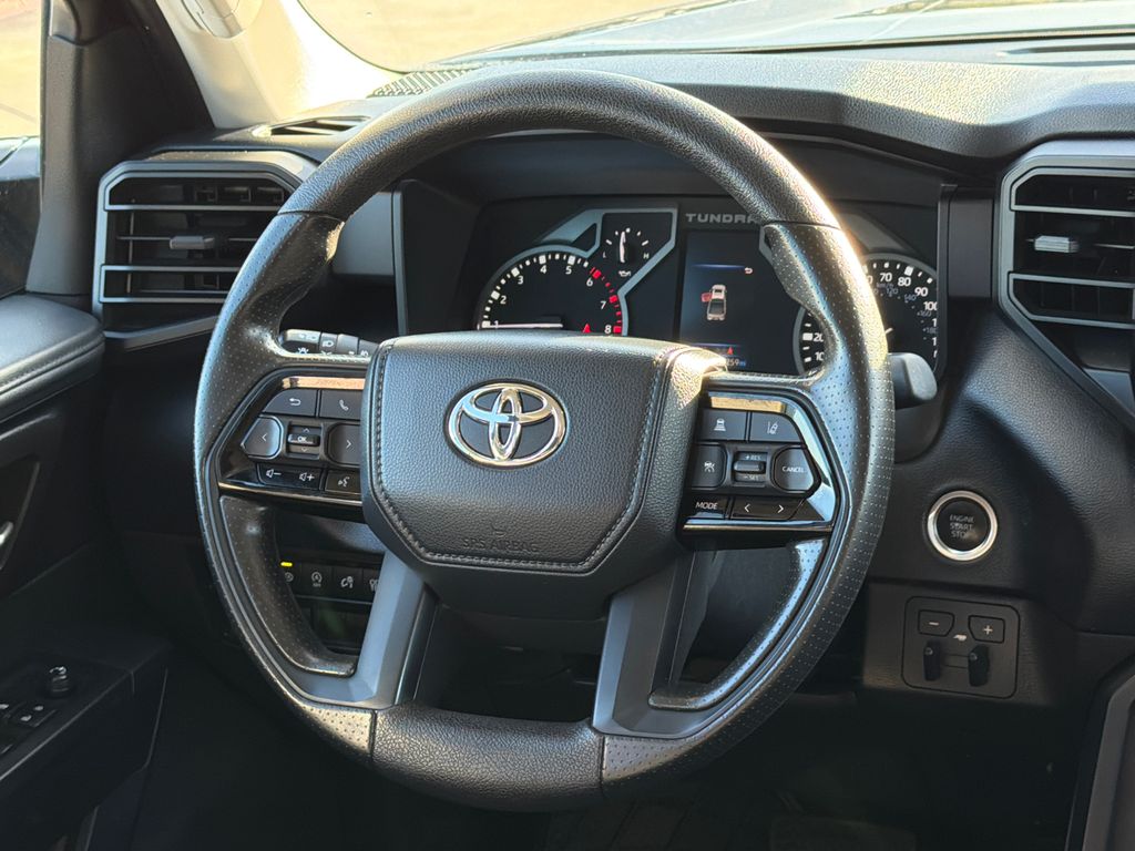 2023 Toyota Tundra SR5 4D CrewMax Midnight Black Metallic 3.4L V6 10-Speed Automatic 4WD This vehicle comes well equipped with SX Package (Fabric Seat Trim and Wheels: 18" Dark Gray Metallic Alloy), Tundra SR5, 4D CrewMax, 3.4L V6, 10-Speed Automatic, 4WD, Black Cloth, and Alloy wheels SX Package (Fabric Seat Trim and Wheels: 18" Dark Gray Metallic Alloy), Tundra SR5, 4D CrewMax, 3.4L V6, 10-Speed Automatic, 4WD, Black Cloth, Alloy wheels, 3.31 Axle Ratio, 4-Way Adjustable Front Bucket Seats, 4-Wheel Disc Brakes, 9 Speakers, ABS brakes, Air Conditioning, AM/FM radio: SiriusXM, Apple CarPlay/Android Auto, Auto High-beam Headlights, Automatic temperature control, Brake assist, Bumpers: body-color, Delay-off headlights, Driver door bin, Driver vanity mirror, Dual front impact airbags, Dual front side impact airbags, Electronic Stability Control, Emergency communication system: Safety Connect (10-year trial), Exterior Parking Camera Rear, Fabric Seat Trim (FB), Front anti-roll bar, Front Bucket Seats, Front Center Armrest, Front fog lights, Front reading lights, Front wheel independent suspension, Fully automatic headlights, Heated door mirrors, Illuminated entry, Knee airbag, Low tire pressure warning, Occupant sensing airbag, Outside temperature display, Overhead airbag, Overhead console, Panic alarm, Passenger door bin, Passenger vanity mirror, Power door mirrors, Power steering, Power windows, Radio data system, Radio: Audio Multimedia System, Rear reading lights, Rear step bumper, Rear window defroster, Remote keyless entry, Safety Connect, Security system, Speed control, Speed-sensing steering, Split folding rear seat, Steering wheel mounted audio controls, Tachometer, Telescoping steering wheel, Tilt steering wheel, Traction control, Trip computer, Variably intermittent wipers, and Voltmeter. For more information contact one of our Internet Managers at 682-498-8390 to set up your VIP Test Drive.. At SHOTTENKIRK CDJR Granbury located in Granbury, TX all of our Pre-Owned vehicles go through a 100 point plus inspection. The oil and filter are changed, complete brake inspection, tire rotation, safety inspection and all fluid levels are topped off. If we find anything that needs attention we address the issue and fix it. So buy with confidence that you are getting a quality vehicle. We can do a complete walk around for you over the phone. Trade ins are always welcomed. We offer financing from over 25 finance and credit unions locally and nationally. SHOTTENKIRK CDJR 4970 E HWY 377 GRANBURY TEXAS 76049.