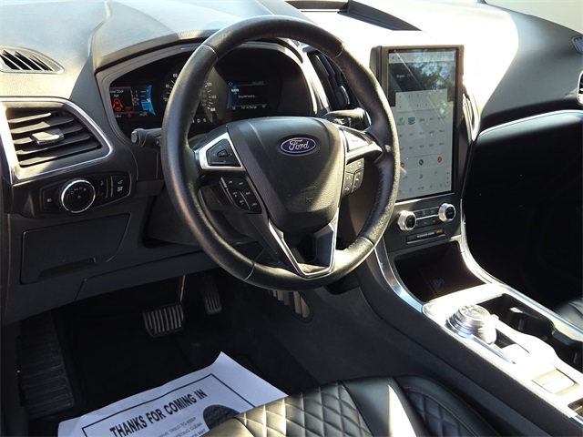 CARFAX One-Owner. Certified. Clean CARFAX. 2024 Ford Edge Black Metallic 4D Sport Utility AWD Titanium 8-Speed Automatic Local Trade In, Edge Titanium, 4D Sport Utility, EcoBoost 2.0L I4 GTDi DOHC Turbocharged VCT, AWD, Ebony Premium Synthetic, 3.80 Axle Ratio, ActiveX-Trimmed Heated Sport Bucket Seats, Auto-dimming Rear-View mirror, Automatic temperature control, Driver vanity mirror, Equipment Group 300A, FordPass Connect, Front Bucket Seats, Fully automatic headlights, Garage door transmitter, Heated front seats, Heated steering wheel, Memory seat, Power driver seat, Power passenger seat, Power steering, Power windows, Radio: B&O Sound System by Bang & Olufsen, Remote keyless entry, SiriusXM w/360L, SYNC 4A w/Enhanced Voice Recognition, Wheels: 19" Luster Nickel-Painted Aluminum. Priced below KBB Fair Purchase Price! Odometer is 9320 miles below market average! 21/28 City/Highway MPG EcoBoost 2.0L I4 GTDi DOHC Turbocharged VCT