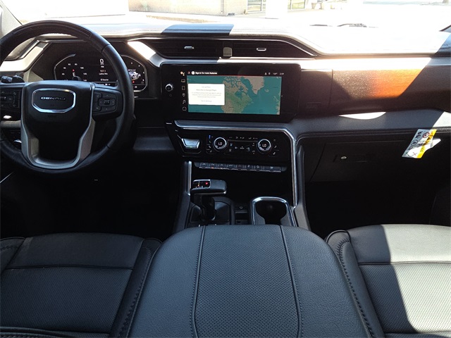 CARFAX One-Owner. Clean CARFAX. 2024 GMC Sierra 1500 Downpour Metallic 4D Crew Cab 4WD Denali 10-Speed Automatic Sierra 1500 Denali, 4D Crew Cab, EcoTec3 6.2L V8, 4WD, Downpour Metallic, Jet Black Leather, 12-Way Power Driver Seat Adjuster w/Lumbar, 12-Way Power Passenger Seat Adjuster w/Lumbar, 120-Volt Bed Mounted Power Outlet, 120-Volt Interior Power Outlet, 170 Amp Alternator, 2 Charge/Data USB Ports Inside Center Console, 2 Type-C Charge-Only Rear USB Ports, 2 USB Ports, Apple CarPlay/Android Auto, Auto High-beam Headlights, Auto-dimming Rear-View mirror, Auto-Locking Rear Differential, Automatic temperature control, Auxiliary External Transmission Oil Cooler, Bed View Camera, Chrome Header w/Signature Denali Chrome Grille, Chrome Recovery Hooks, Chrome Wheel To Wheel Assist Steps, Color-Keyed Carpeting Floor Covering, Deep-Tinted Glass, Denali Premium Suspension w/Adaptive Ride Control, Denali Reserve Super Package, Driver Memory, Electric Rear-Window Defogger, Floor-Mounted Center Console, Front Rain-Sensing Wipers, GMC Connected Access Capable, GMC MultiPro Power Steps, HD Surround Vision, Heated 2nd Row Outboard Seats, Heated Driver & Front Outboard Passenger Seating, Heated front seats, Heated rear seats, Heavy-Duty Air Filter, Hill Descent Control, Hitch Guidance, Hitch View, In-Vehicle Trailering System App, Integrated Trailer Brake Controller, Keyless Open & Start, Lane Keep Assist w/Lane Departure Warning, LED Cargo Area Lighting, Memory seat, Multicolor 15" Diagonal Head-Up Display, Navigation System, OnStar & GMC Connected Services Capable, Perimeter Lighting, Power Door Locks, Power driver seat, Power Front Passenger Windows w/Express Up/Down, Power Front Windows w/Driver Express Up/Down, Power Rake & Telescoping Steering Column, Power Rear Windows w/Express Down, Power Sliding Rear Window w/Rear Defogger, Power Sunroof, Preferred Equipment Group 5SA, Premium audio system: GMC Infotainment System, Premium Bose 7-Speaker Sound System, Push Button Start, Radio: Premium GMC Infotainment Audio System, Rear Camera Mirror, Rear Cross Traffic Braking, Rear Pedestrian Detection, Rear Wheelhouse Liners, Remote Vehicle Starter System, SiriusXM w/360L, Spray-On Pickup Bedliner w/Denali Logo, Steering Wheel Audio Controls, Super Cruise, Super Cruise Wrapped Steering Wheel, Technology Package, Theft Deterrent System (Unauthorized Entry), Trailer Camera Provisions, Trailer Side Blind Zone Alert, Trailering Package, Ultrasonic Front & Rear Park Assist, Universal Home Remote, Ventilated Driver & Front Passenger Seats, Wheel Locks (Set of 4) (LPO), Wheels: 22" x 9" Painted Aluminum, Wi-Fi Hotspot Capable, Wireless Apple CarPlay/Wireless Android Auto, Wireless Charging. Priced below KBB Fair Purchase Price! Odometer is 10834 miles below market average! EcoTec3 6.2L V8