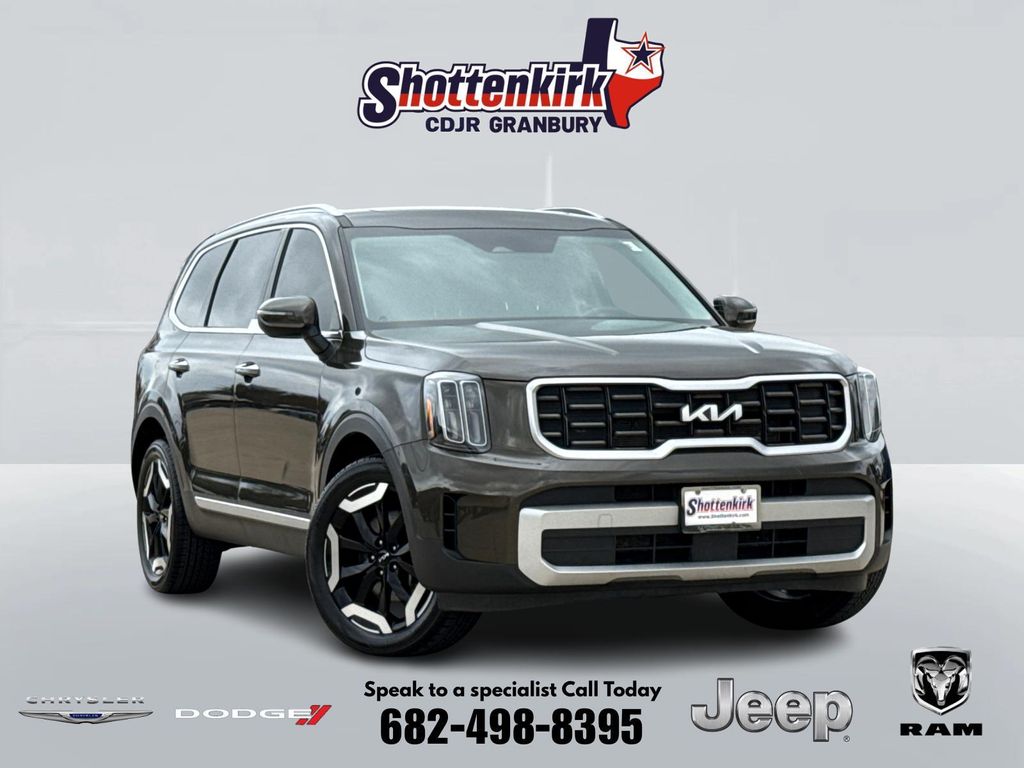 CARFAX One-Owner. 2024 Kia Telluride S 4D Sport Utility Dark Moss 3.8L V6 DOHC 8-Speed Automatic FWD This vehicle comes well equipped with S Sunroof Package (Power Sunroof w/Sunshade), Telluride S, 4D Sport Utility, 3.8L V6 DOHC, FWD, Dark Moss, Black Artificial Leather, 3rd row seats: split-bench, Apple CarPlay & Android Auto, Auto High-beam Headlights, Exterior Parking Camera Rear, Front Bucket Seats, Fully automatic headlights, Heated Front Bucket Seats, Heated front seats, Navigation System, Power door mirrors, Power driver seat, Reclining 3rd row seat, Remote keyless entry, Roof rack: rails only, Smart Key w/ Push Button and Remote Start, Steering wheel mounted audio controls, and SynTex Synthetic Leather Seat Trim S Sunroof Package (Power Sunroof w/Sunshade), Telluride S, 4D Sport Utility, 3.8L V6 DOHC, FWD, Dark Moss, Black Artificial Leather, 3rd row seats: split-bench, Apple CarPlay & Android Auto, Auto High-beam Headlights, Exterior Parking Camera Rear, Front Bucket Seats, Fully automatic headlights, Heated Front Bucket Seats, Heated front seats, Navigation System, Power door mirrors, Power driver seat, Reclining 3rd row seat, Remote keyless entry, Roof rack: rails only, Smart Key w/ Push Button and Remote Start, Steering wheel mounted audio controls, SynTex Synthetic Leather Seat Trim, 3.510 Axle Ratio, 4-Wheel Disc Brakes, 6 Speakers, ABS brakes, Air Conditioning, Alloy wheels, AM/FM radio: SiriusXM, Automatic temperature control, Brake assist, Bumpers: body-color, Carpet Floor Mats, Delay-off headlights, Driver door bin, Driver vanity mirror, Dual front impact airbags, Dual front side impact airbags, Electronic Stability Control, Emergency communication system: 911 Connect, Four wheel independent suspension, Front anti-roll bar, Front Center Armrest, Front dual zone A/C, Front reading lights, Heated door mirrors, Illuminated entry, Knee airbag, Leather Shift Knob, Leather steering wheel, Low tire pressure warning, Occupant sensing airbag, Outside temperature display, Overhead airbag, Overhead console, Panic alarm, Passenger door bin, Passenger vanity mirror, Power steering, Power windows, Radio data system, Radio: AM/FM Display Audio System, Rear air conditioning, Rear anti-roll bar, Rear audio controls, Rear reading lights, Rear side impact airbag, Rear window defroster, Rear window wiper, Security system, Speed control, Speed-sensing steering, Split folding rear seat, Spoiler, Tachometer, Telescoping steering wheel, Tilt steering wheel, Traction control, Trip computer, Turn signal indicator mirrors, Variably intermittent wipers, and Wheels: 20" x 7.5" Black Finish. For more information contact one of our Internet Managers at 682-498-8390 to set up your VIP Test Drive.. At SHOTTENKIRK CDJR Granbury located in Granbury, TX all of our Pre-Owned vehicles go through a 100 point plus inspection. The oil and filter are changed, complete brake inspection, tire rotation, safety inspection and all fluid levels are topped off. If we find anything that needs attention we address the issue and fix it. So buy with confidence that you are getting a quality vehicle. We can do a complete walk around for you over the phone. Trade ins are always welcomed. We offer financing from over 25 finance and credit unions locally and nationally. SHOTTENKIRK CDJR 4970 E HWY 377 GRANBURY TEXAS 76049.